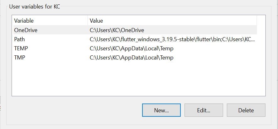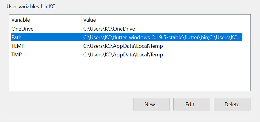 Here choose to add New. And there you have to give the location of the flutter bin folder such as C:\src\flutter\bin.