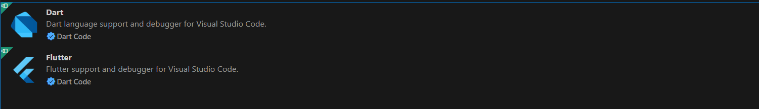 - Then go to the extensions section and install Flutter and Dart extensions.