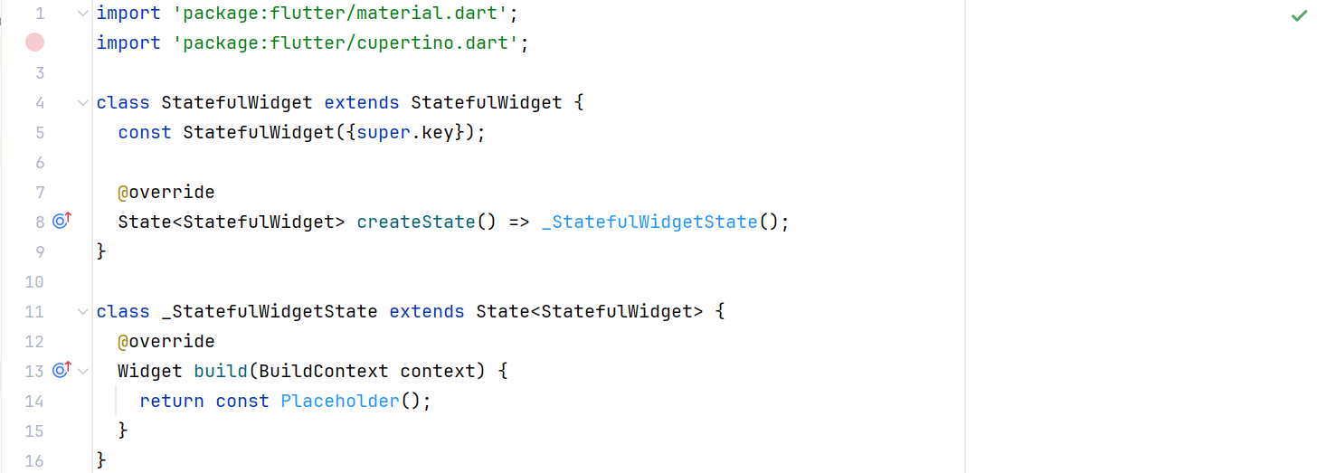 - Stateful Widgets: These widgets can change their state in real time. There state is mutable and when state of the widget changes it can update the user screen screen as well.