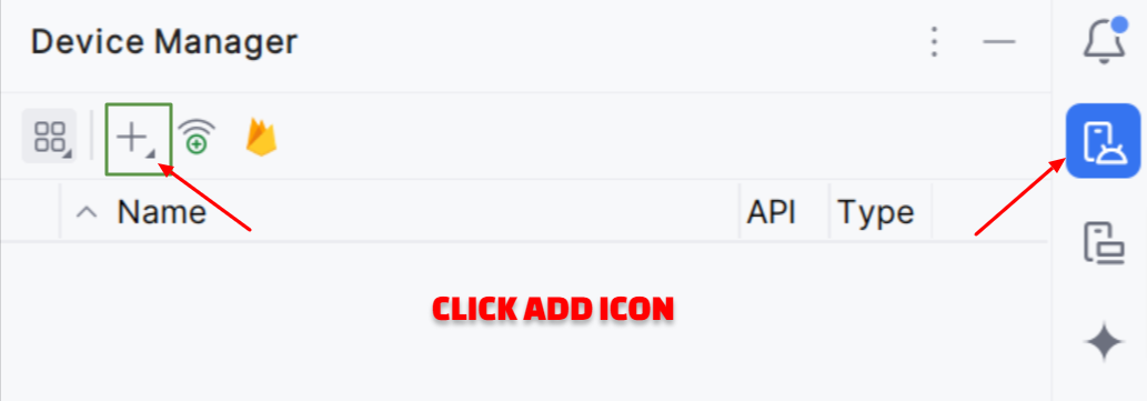 - Go to Tools → AVD Manager (Android Virtual Device Manager).