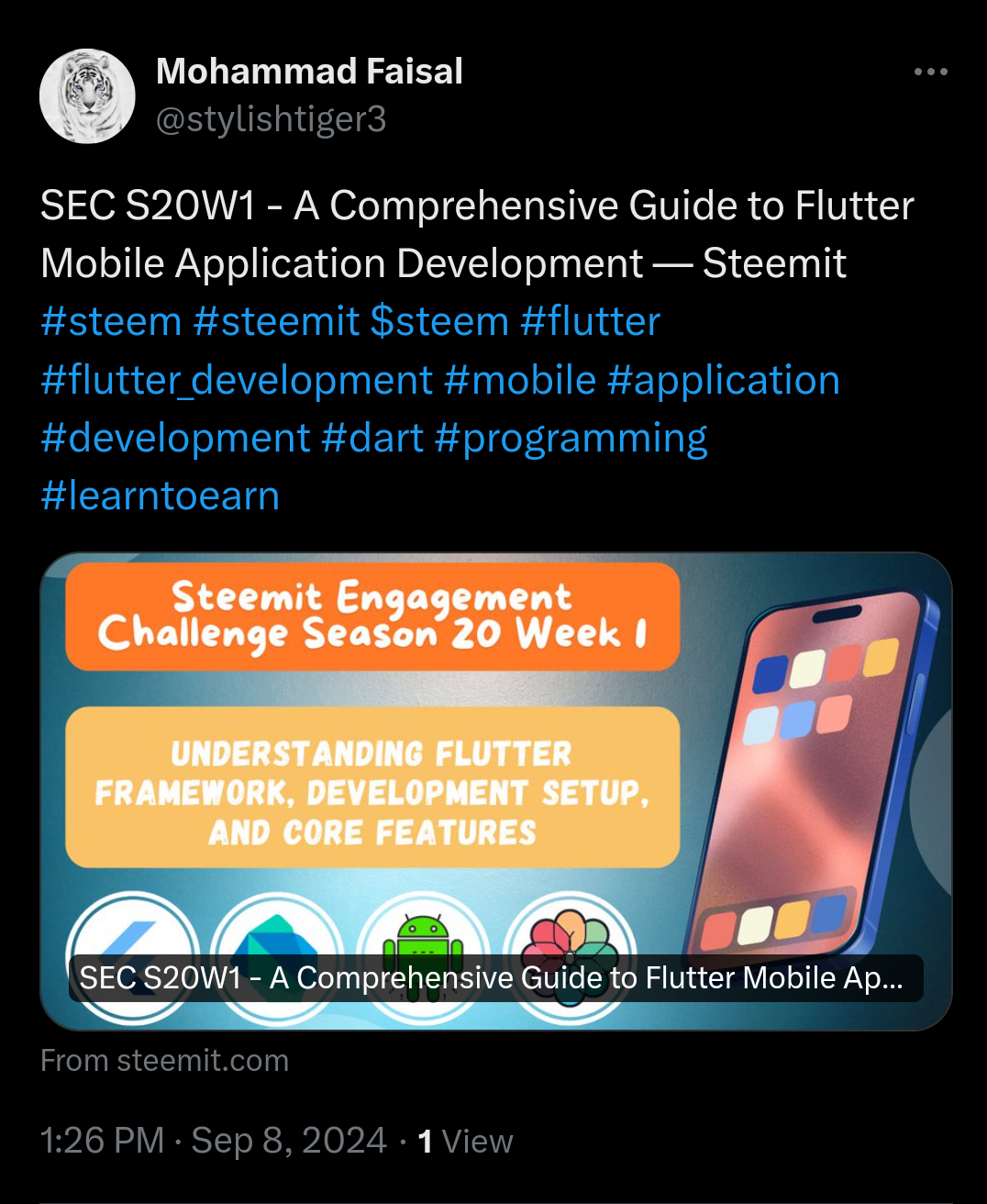 My Entry: https://steemit.com/flutterdev-s20w1/@akmalshakir/sec-s20w1-a-comprehensive-guide-to-flutter-mobile-application-development