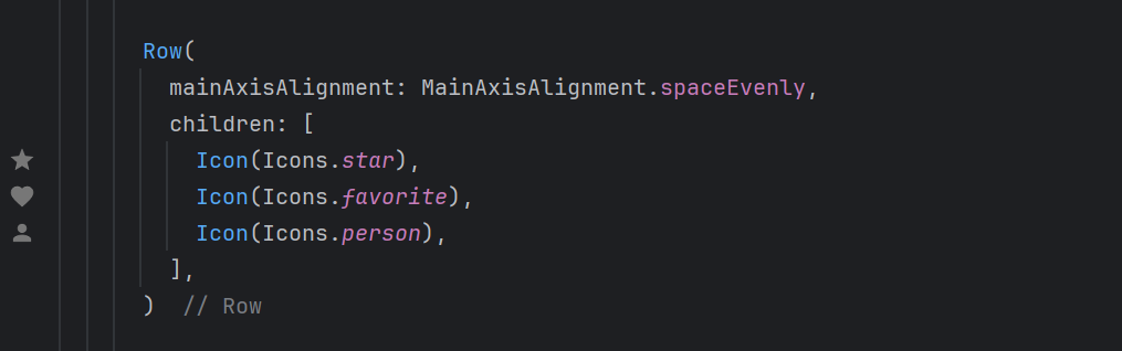 Row is also a commonly used widget. It is used to align the widgets horizontally. It's syntax is similar to the column. It can also have multiple children.