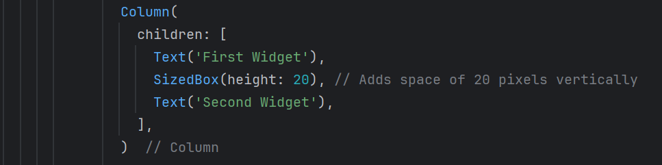 Here you can see that I have used 2 text widgets in a column. And in order to give vertical space between these two widgets I have used SizedBox.