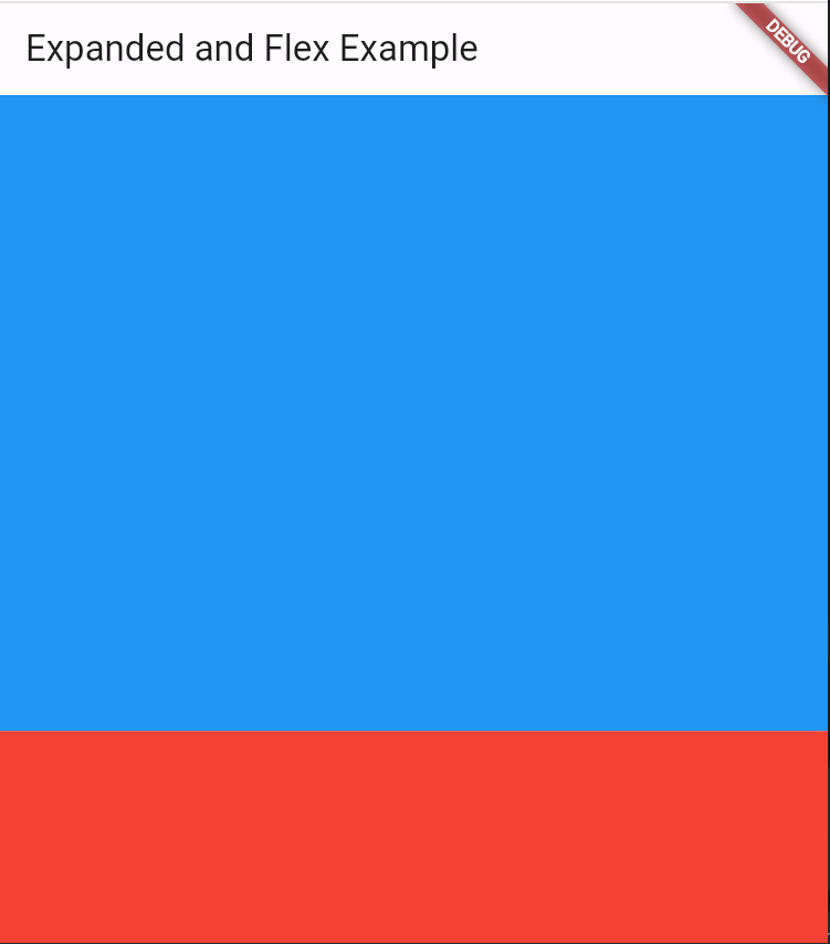 In the above example we have used flex and expanded widget in a column to divide the screen vertically. In this the red container is occupying the 3/4 part of the screen and the second container is occupying the 1/4 part of the screen vertically.