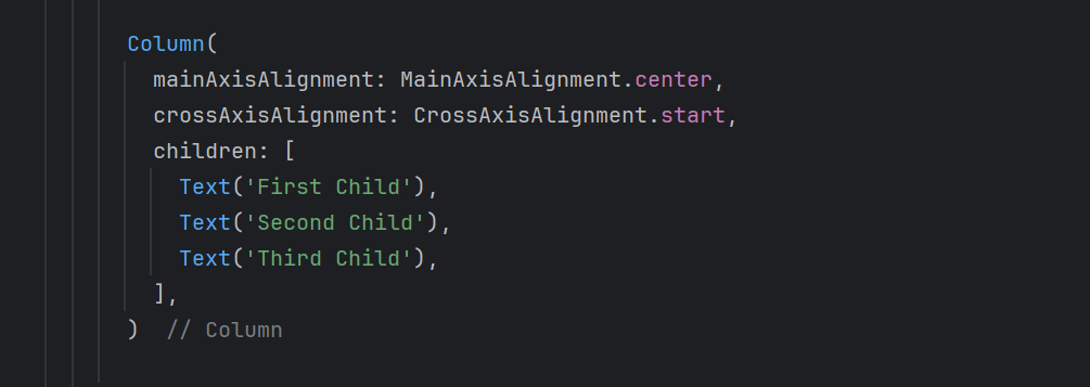 This is very useful widget which is used to align the layout of the application. Multiple children can be used in a column . Moreover it is used to align the widgets vertically. It's syntax is very simple.