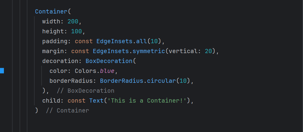 As from the name we can guess it is a container which can hold something. So in flutter a container holds other widgets. We can apply decoration by using the container. We can use it for the multiple purposes. We can also convert into a button using the advance concepts.
