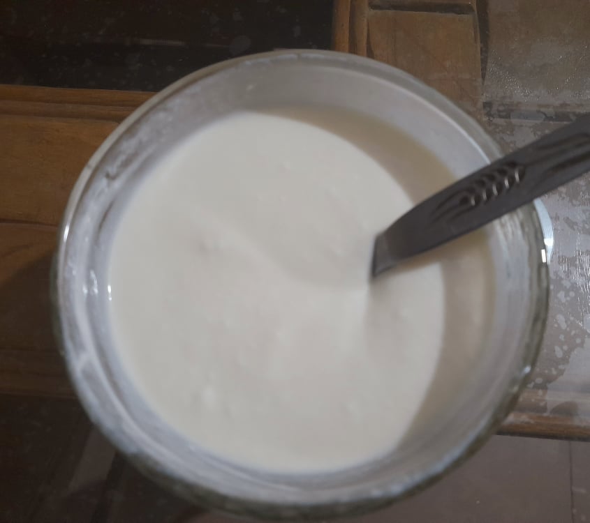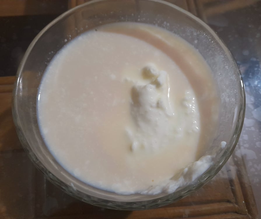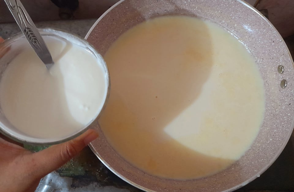 এরপর ফাটানো টকদই টুকু কুসুম কুসুম গরম দুধের মধ্যে দিয়ে দিলাম।