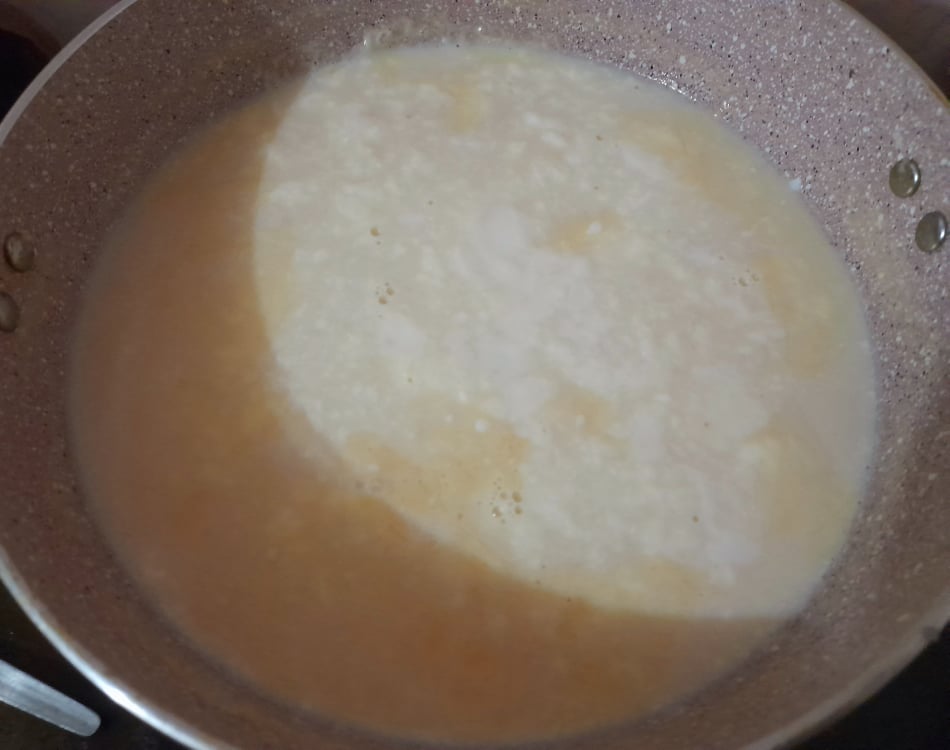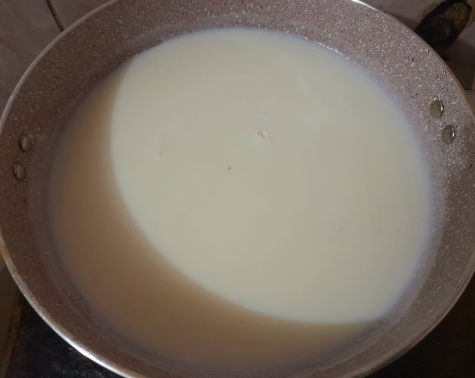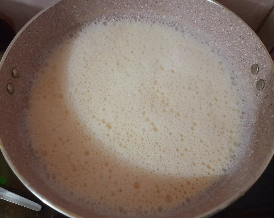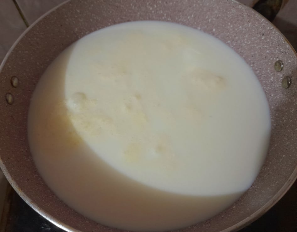 প্রথমে আমি দুধ একটি পাত্রে নিয়ে ৬ থেকে ৭ বলক দিয়ে জ্বাল করে নিলাম। এরপর পরিমাণমতো চিনি দিয়ে দিলাম। যেহেতু চিনি গলে যাওয়ার পর এর থেকেও কিছুটা পানি বের হবে। তাই আবারও দুধ ২ বলদ দিয়ে জ্বাল করে নিলাম।