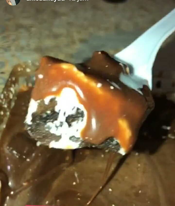 Chocolate ice cream is very delicious if the melted chocolate is combined with the coldness of ice will be very delicious