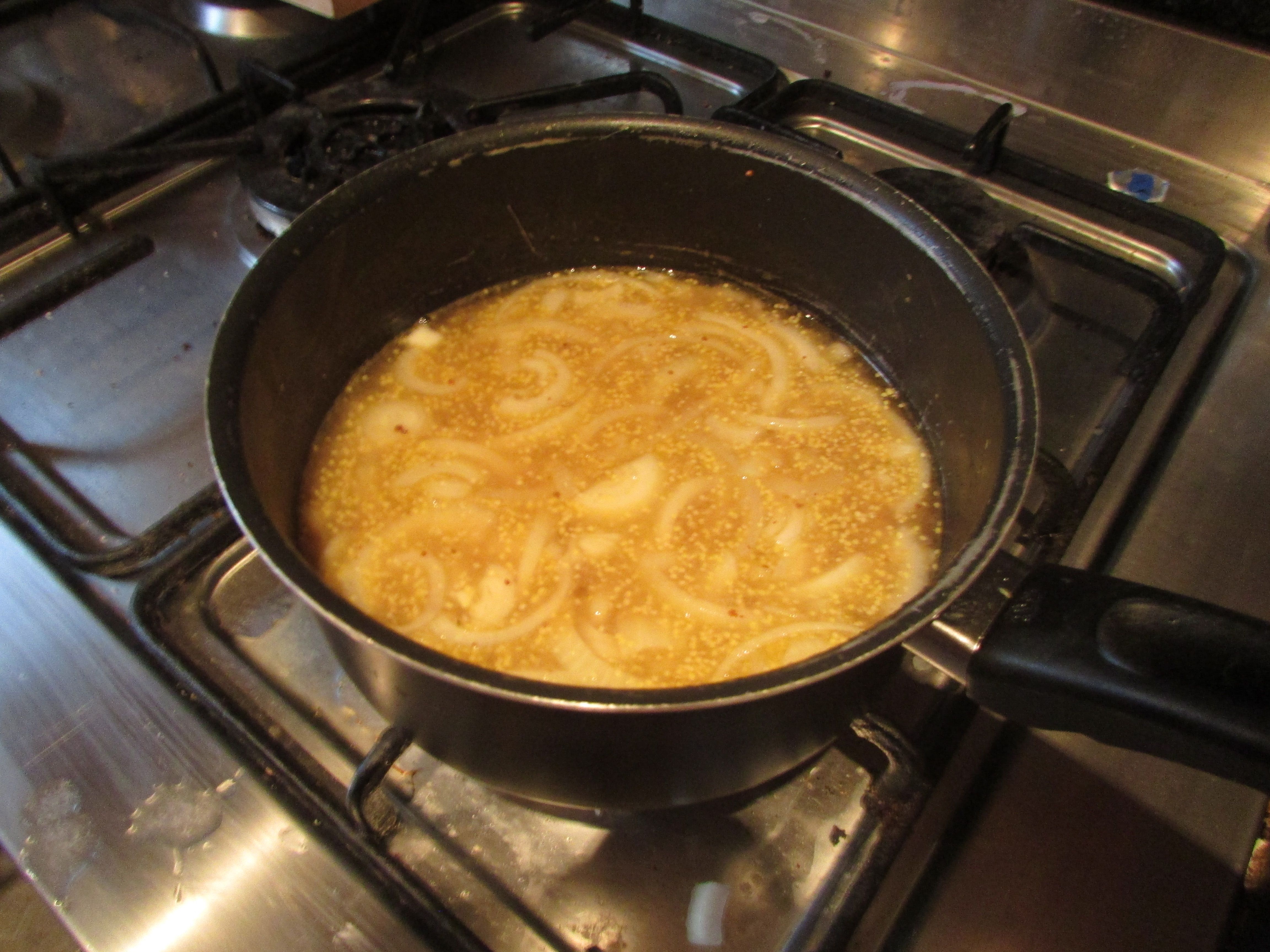 Once the onions have softened just add the stock and reduce the heat to simmer for 5 or so minutes.