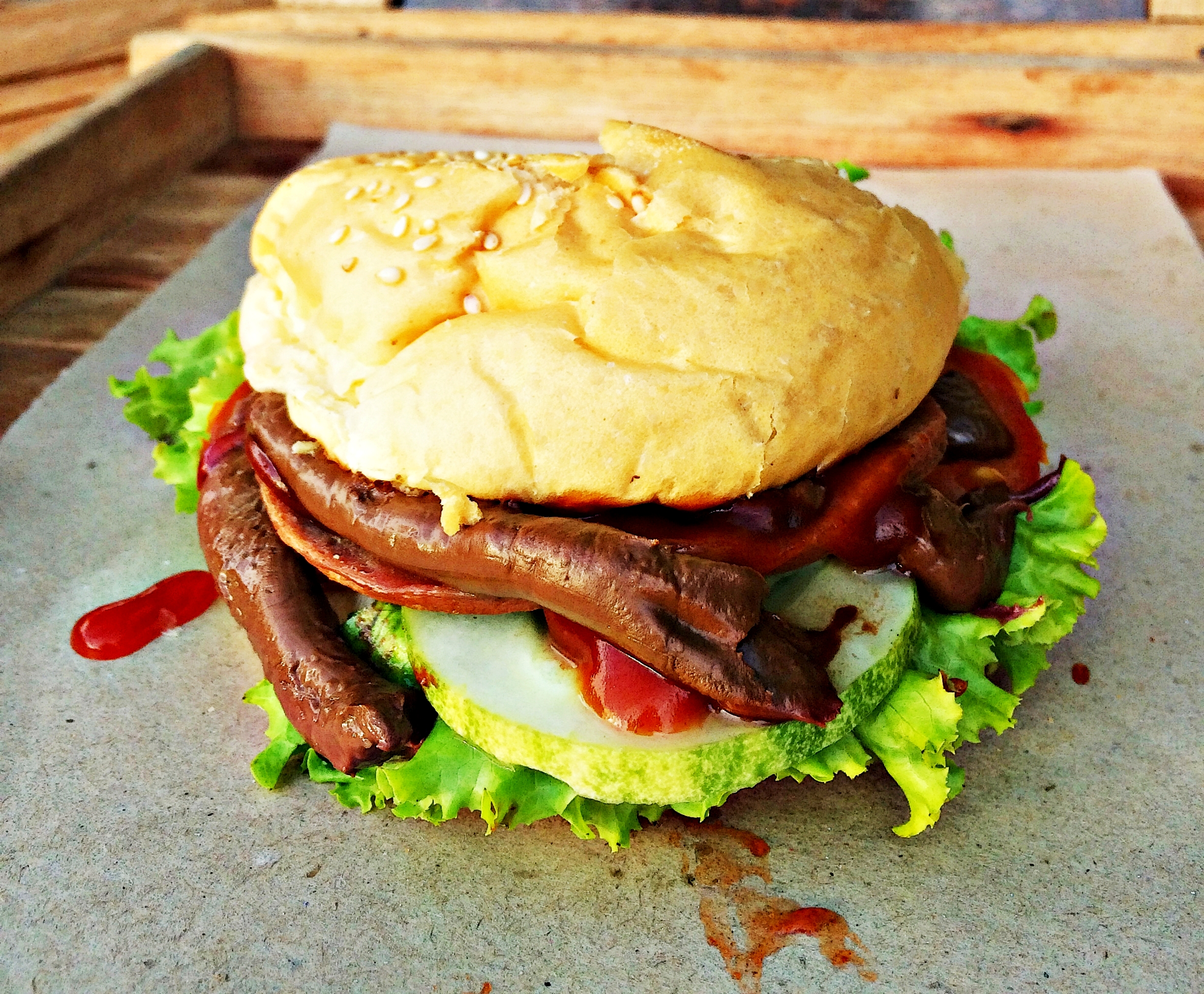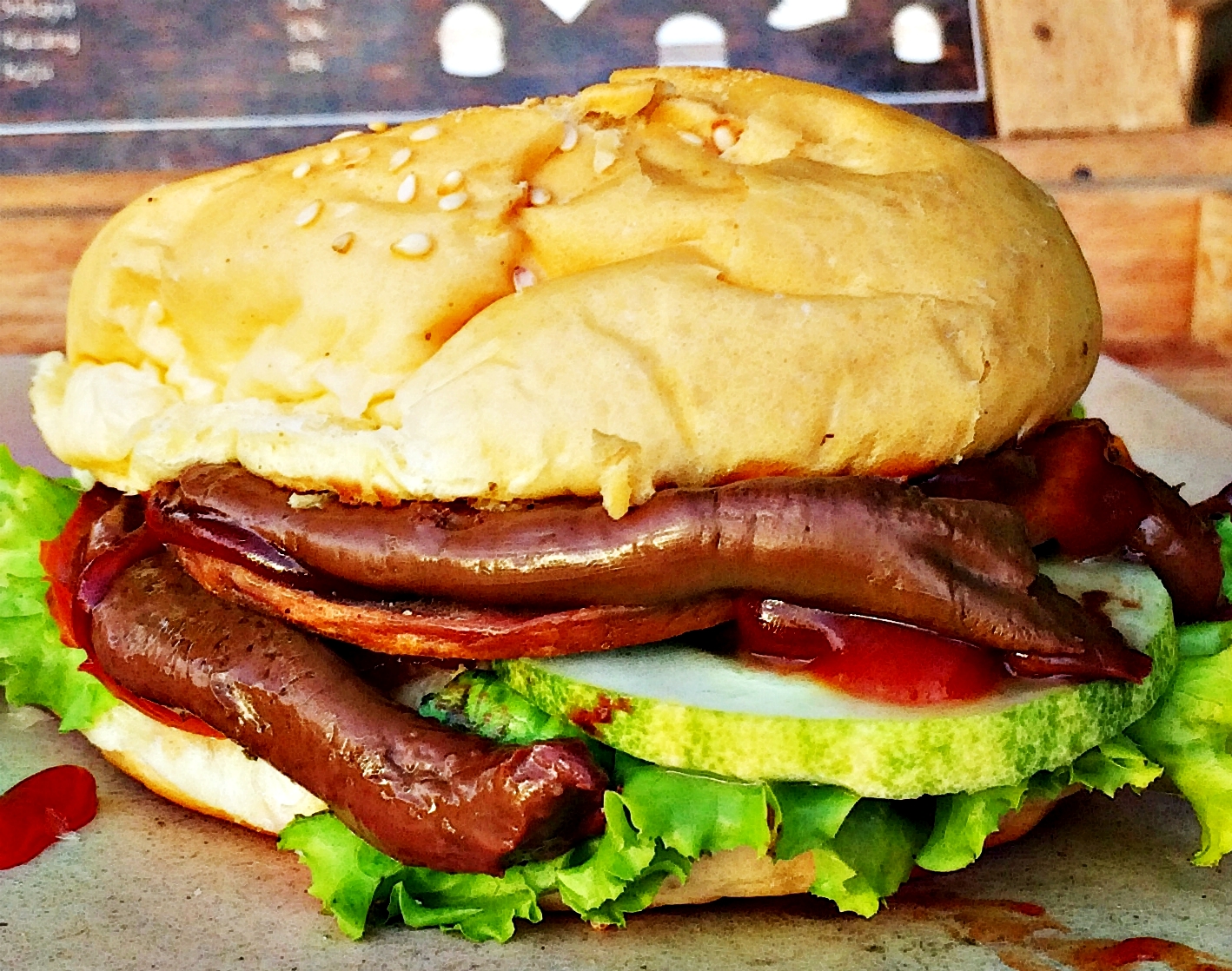 Chocolate sandwich food is very much enjoyed everywhere. Then, what it's like if the burger is served with chocolate. This one burger uses meat, bread and chocolate. It must be weird to eat meat with chocolate. Fill the meat on this burger is replaced with chokki chocolate. Chocolate chokki is served in a catch of bread-shaped burger. We believe this chokki burger can up your taste for culinary food lovers.