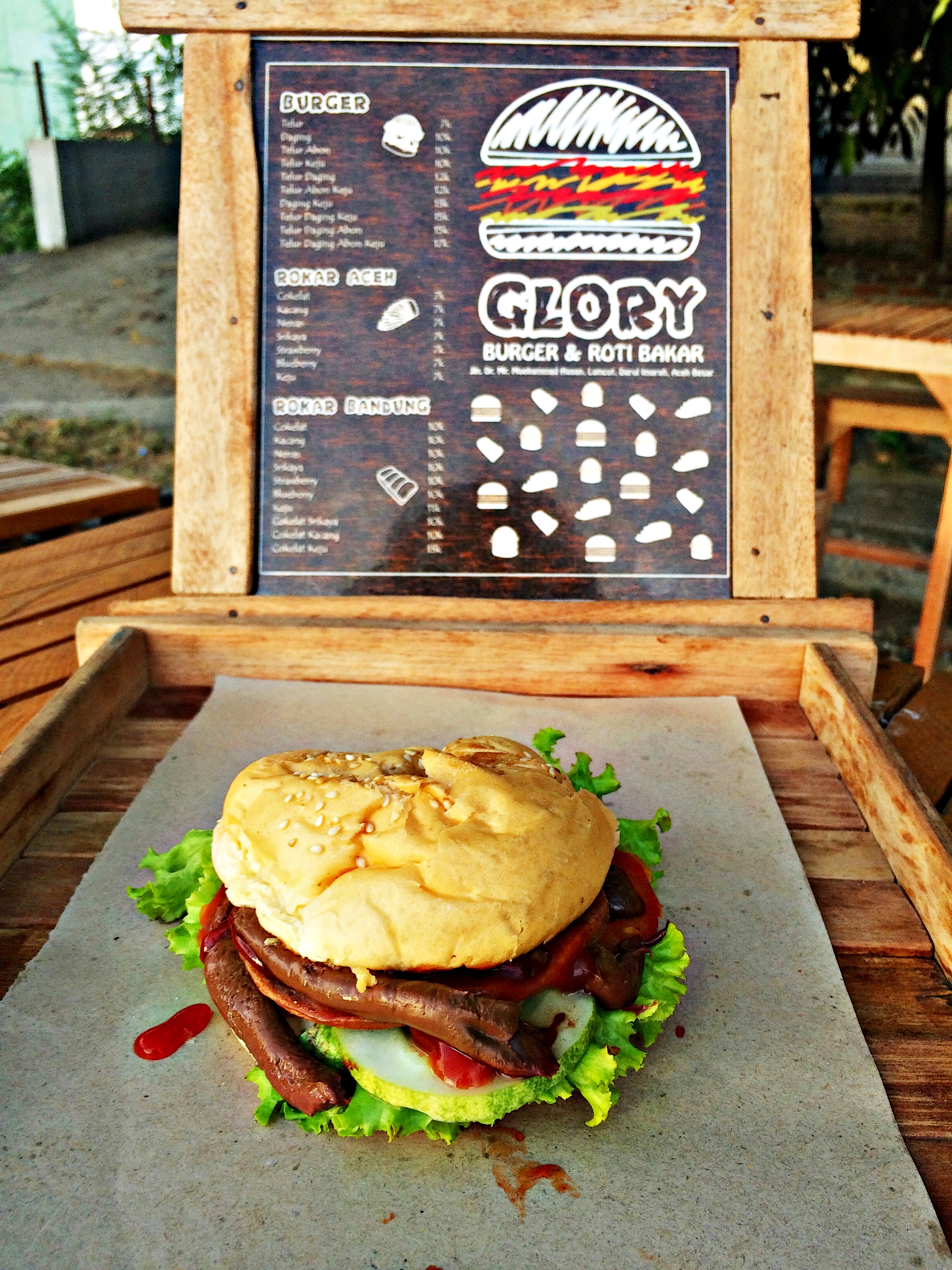 Just come to our store @ gloryburger (instagram) on Dr. Mr. Moehammad Hasan, after KFC Batoh, Banda Aceh City. We open every day at 17.00 - 24.00 wib. thanks.