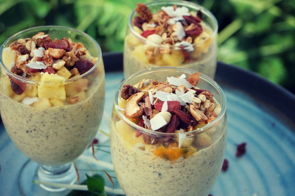 Piña Colada Chia Seed Pudding with Superfood Toppings