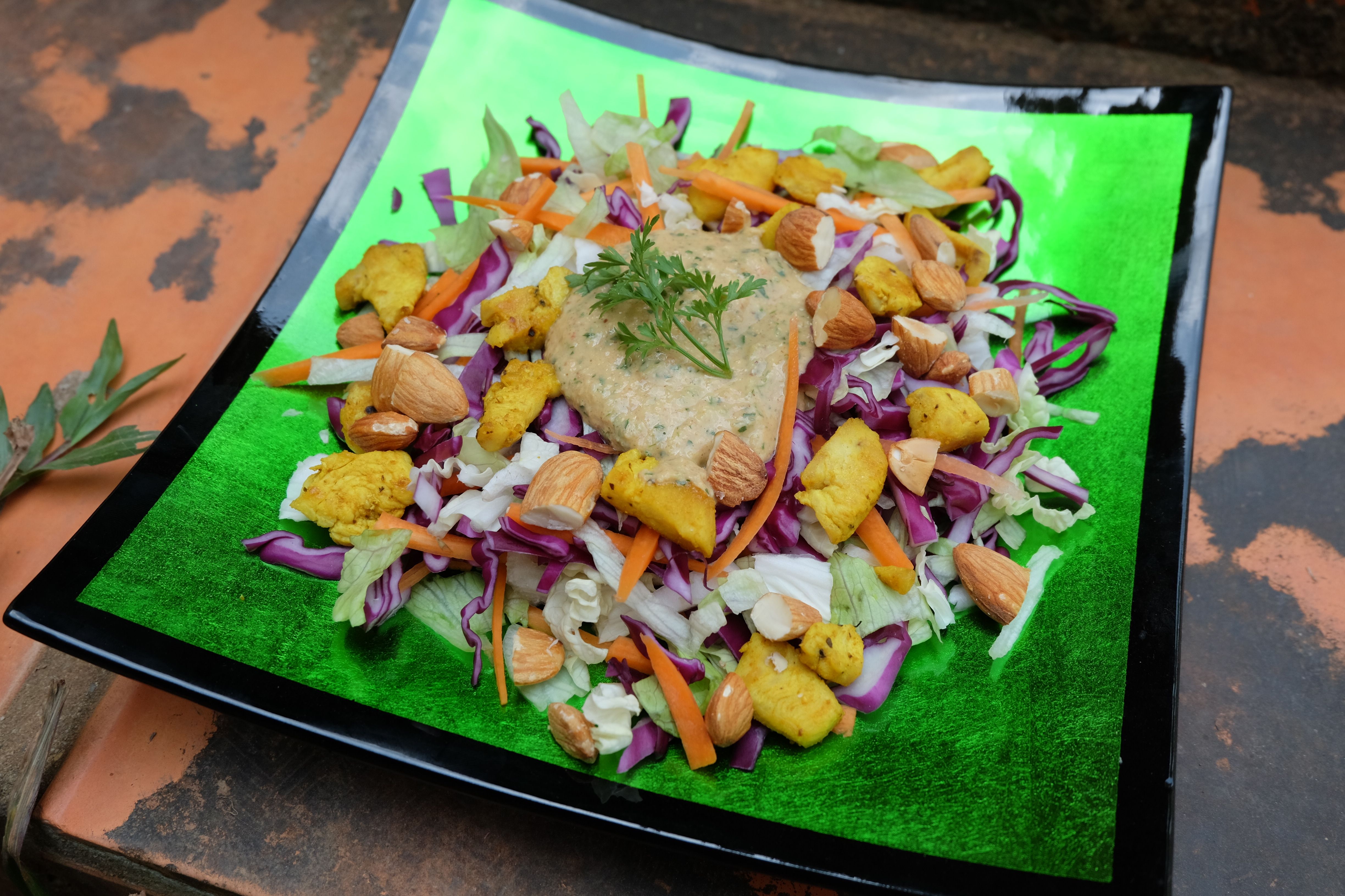 Turmeric Chicken Salad with Spicy Peanut Butter Dressing