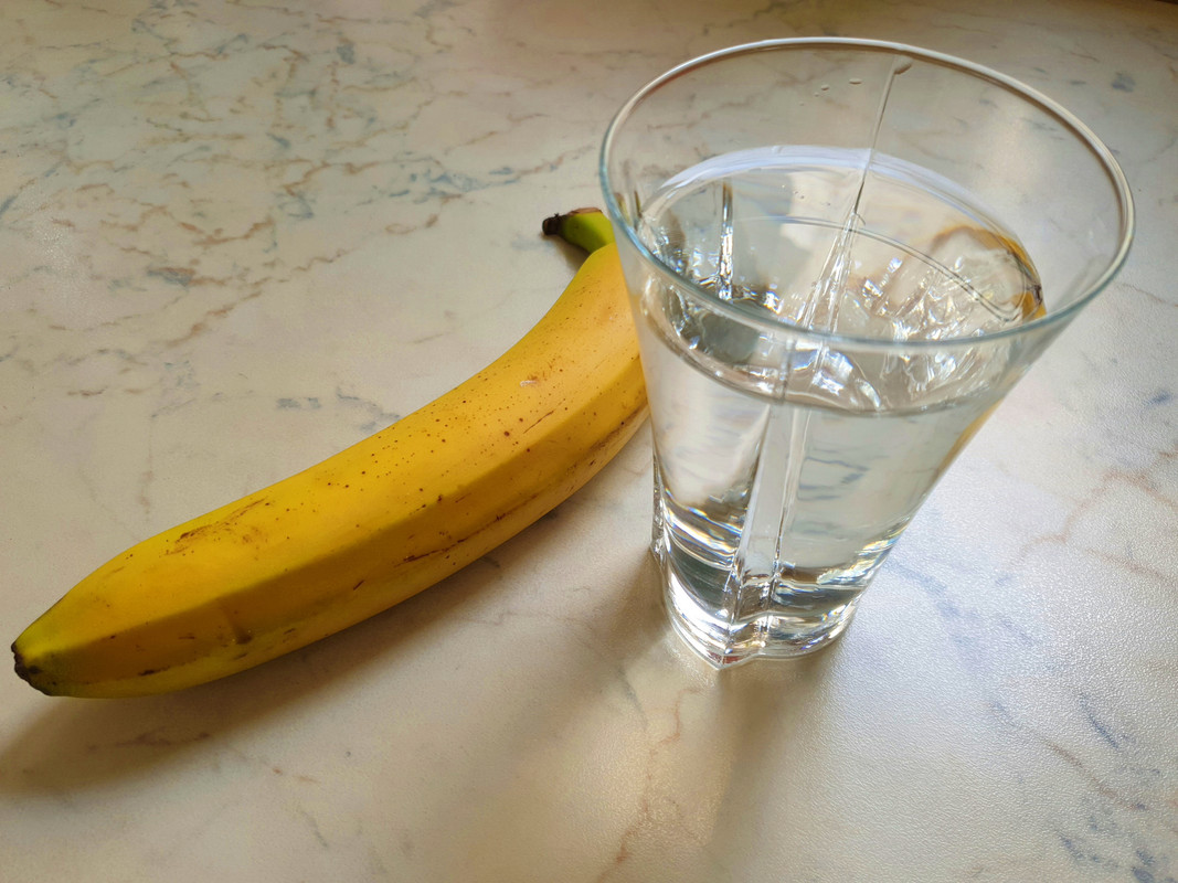 - one banana and glass of water
