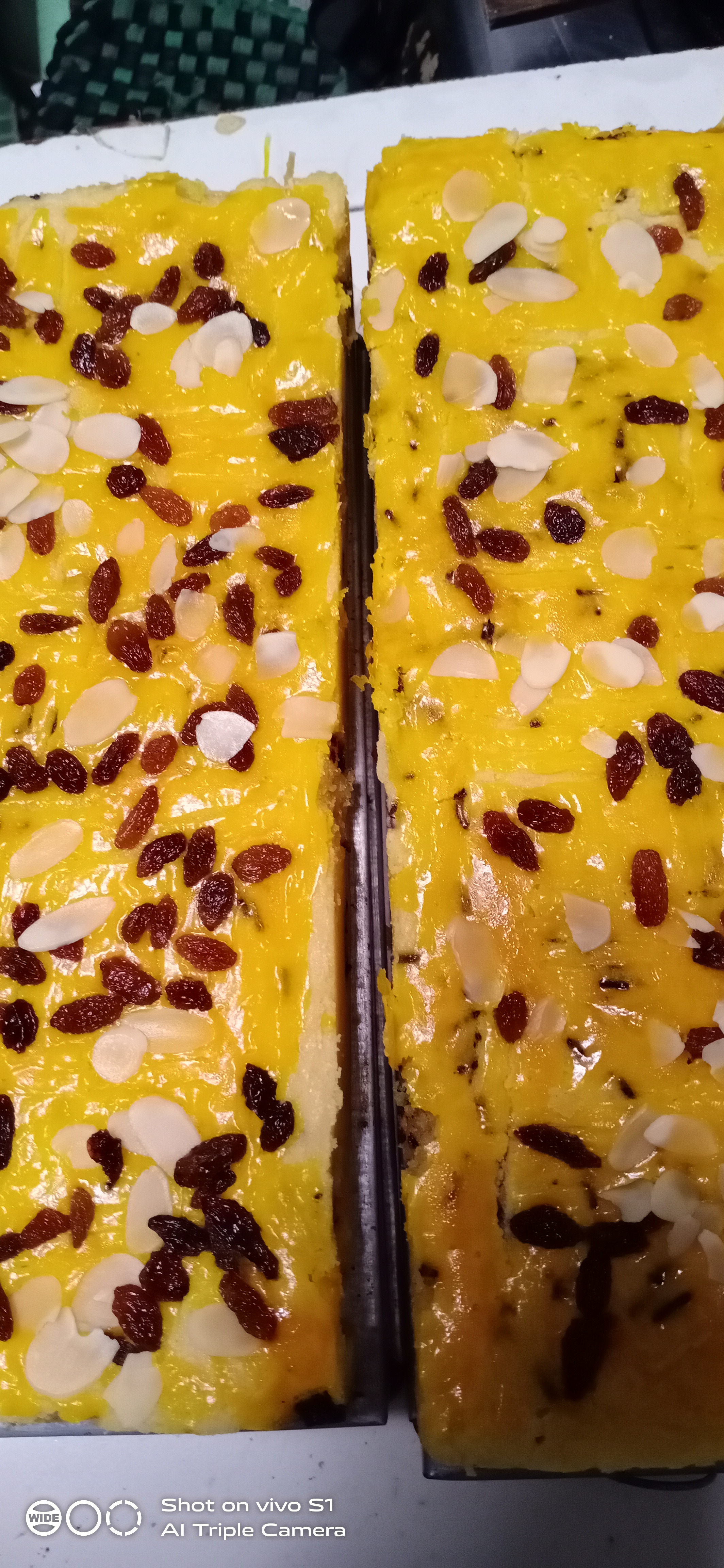 Only by using 10 tablespoons of flour, refined sugar and 250 grams of butter, it becomes a special cake, topped with raisins and almonds accompanied by a cup of coffee that is very delicious