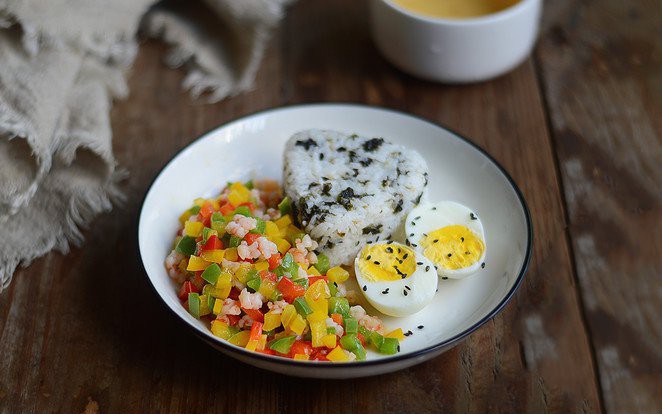 Special dinner.annie198x (67)in #food • 7 years ago image source Ingredients. 6 shrimps. 20 grams of red pepper, 20 grams of yellow pepper, 20 grams of green pepper. Seaweed. 1 bowl of cooked rice. 0.5 grams of salt. 15mls of olive oil. 1 boiled egg. (Editing...)
