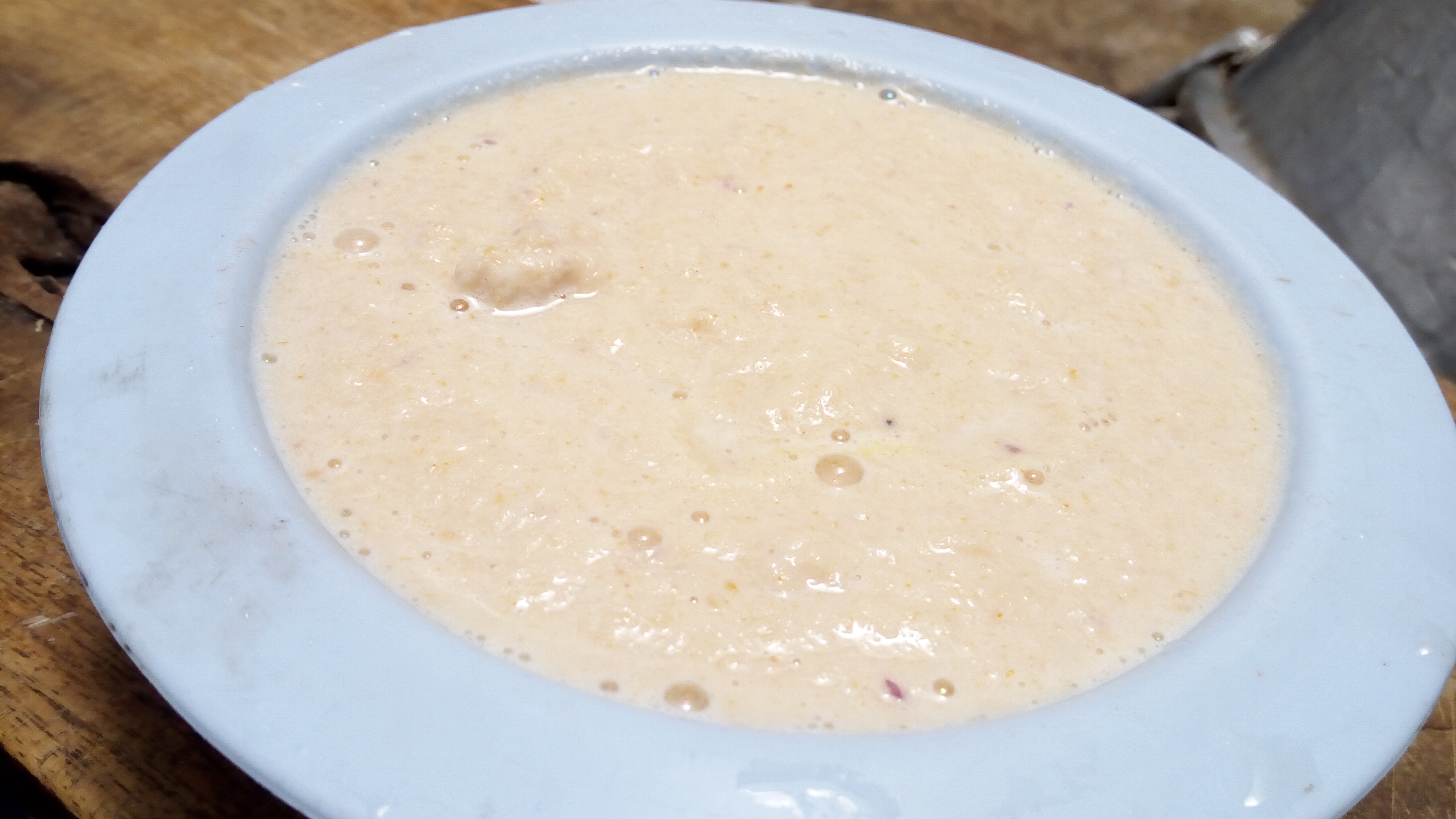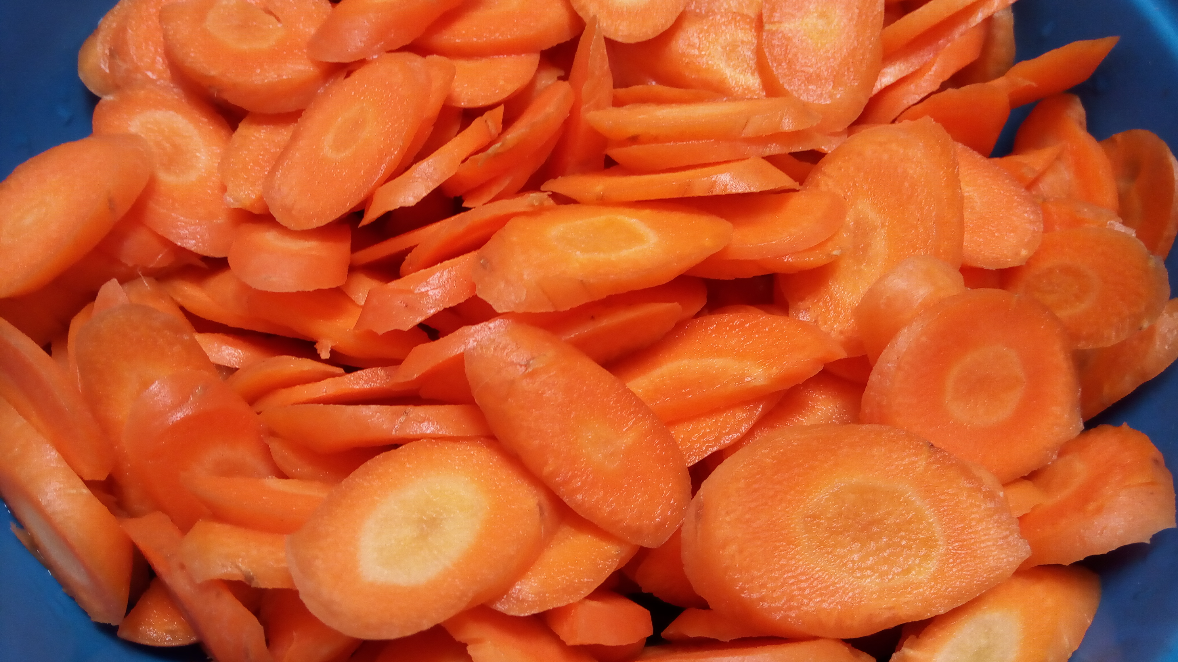 Add carrots, Chicken flakes, Stir briefly until well blended, add water, pepper, salt, sugar and oil, stir until smooth and cook until the water boils and the carrots become slightly tender.