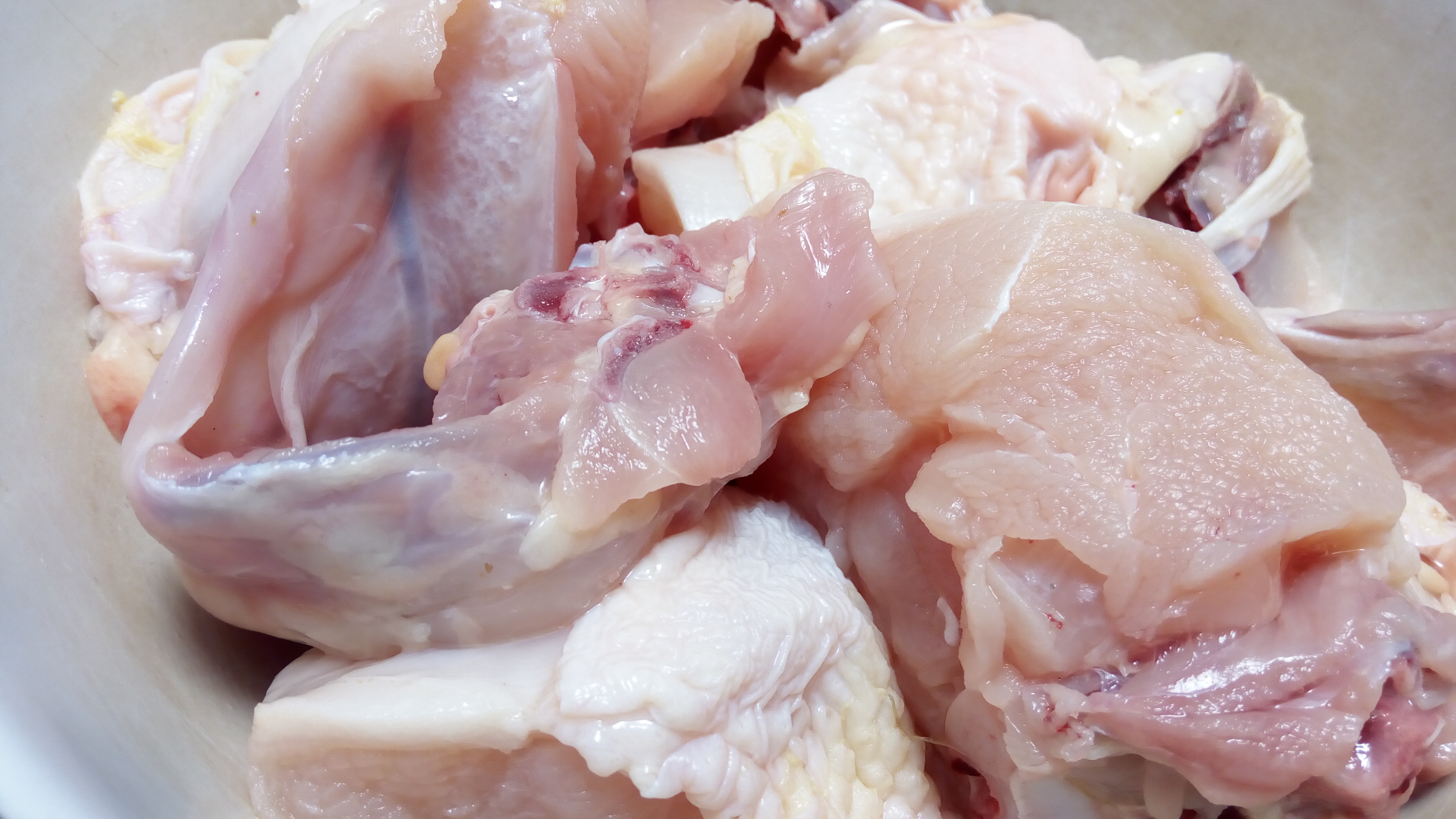 Prepare a frying pan, give oil and heat. Saute the garlic until fragrant, add the chicken, stir and cook until the chicken changes color and is undercooked. Then stir and stir for 1 minute.