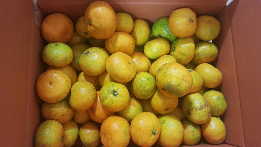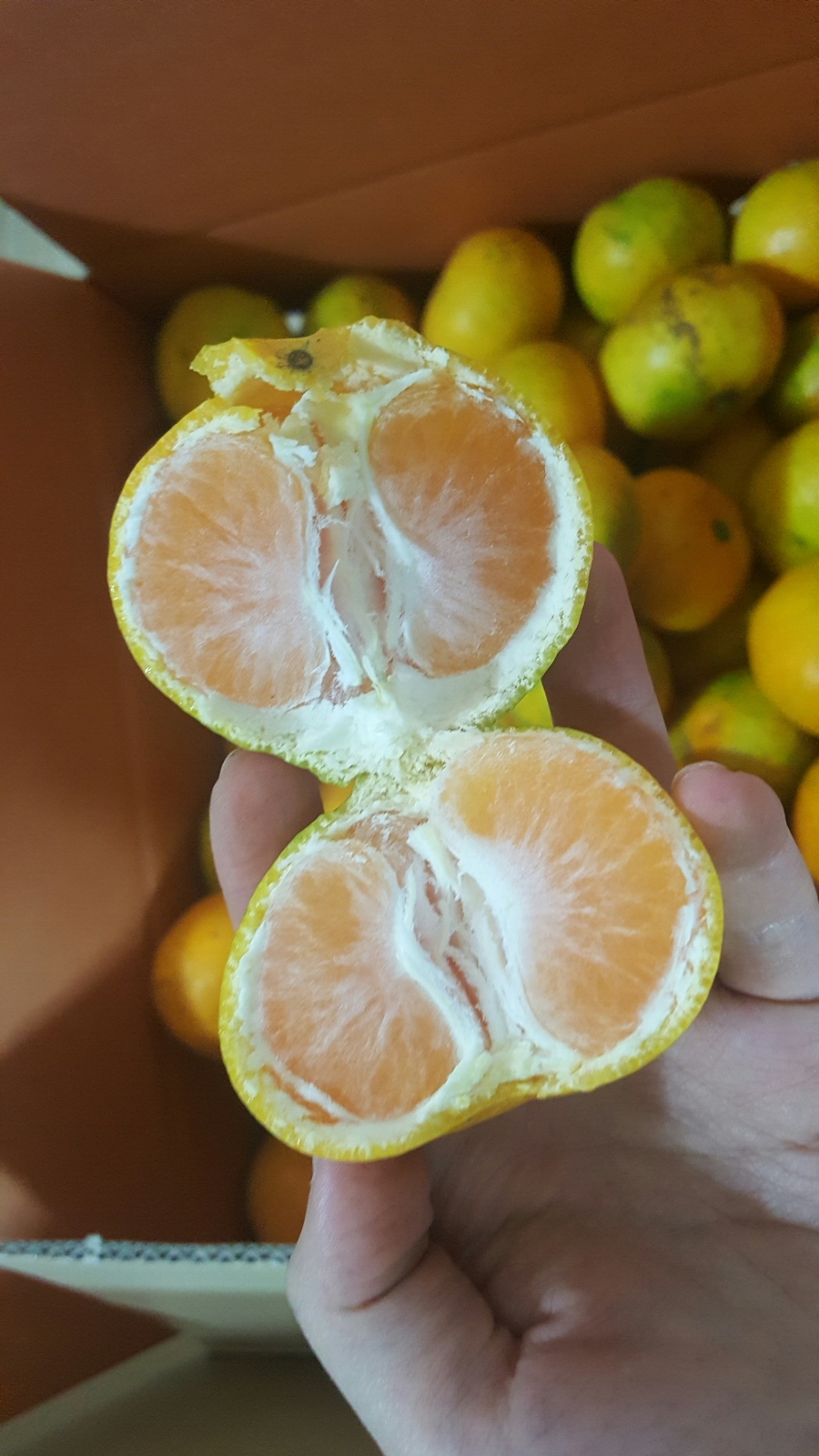 감귤이 매끈하지 않고 못생겼지만 농약을 치지 않고 재배한 거라서 안심하고 먹을 수 있어요.