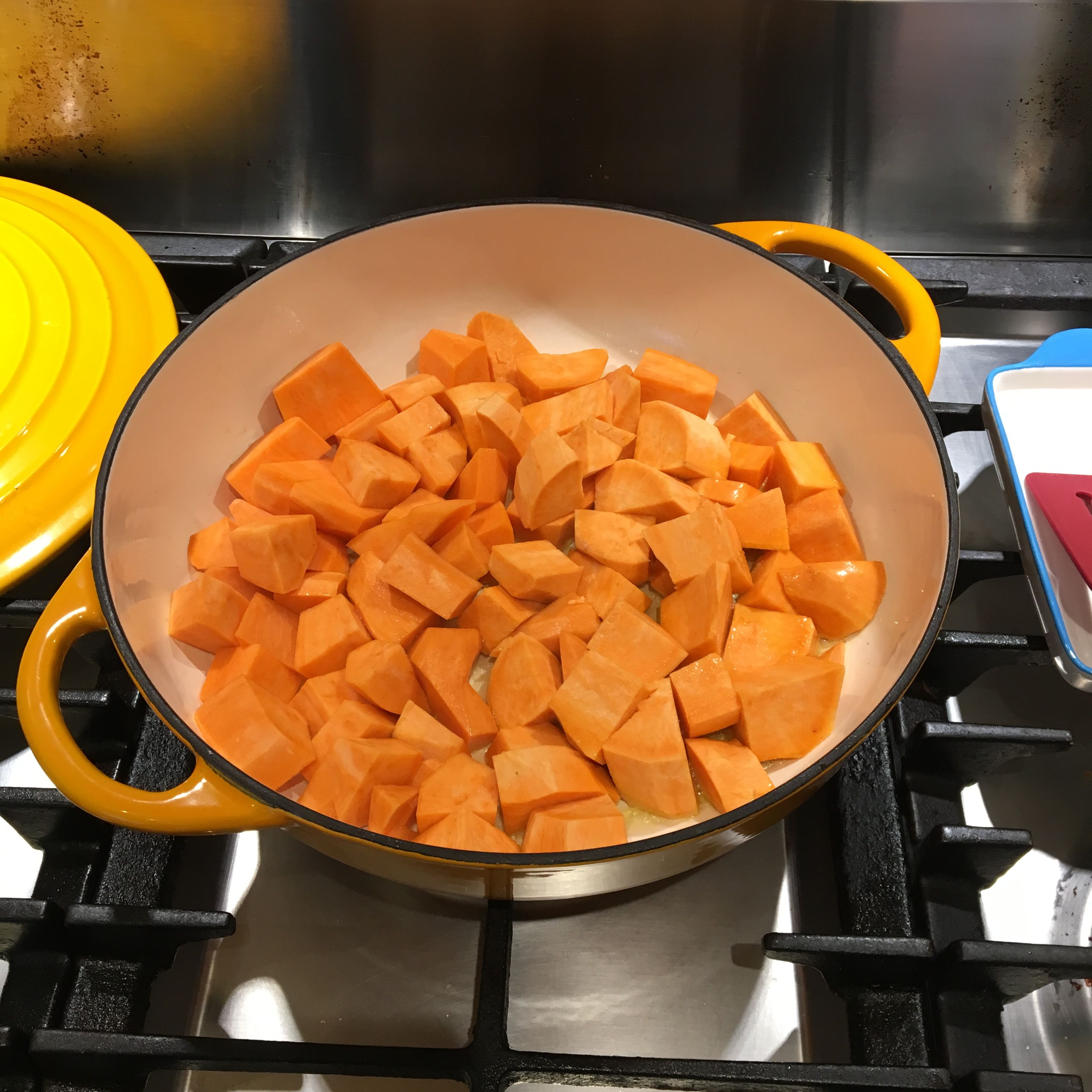 Mix the Sweet Potatoes with a 1 Tbs of olive oil and bake in the oven for about 30 min @375F