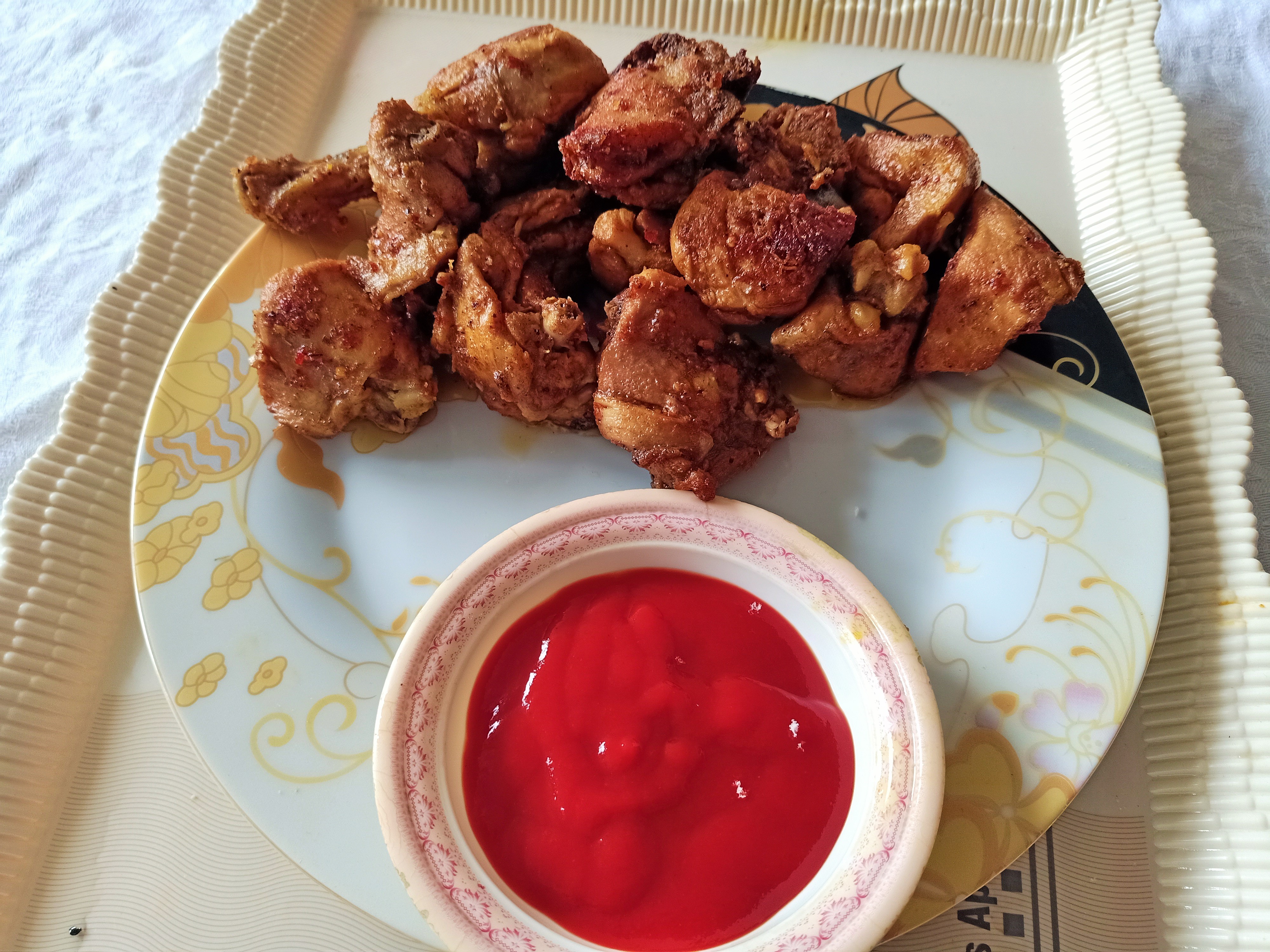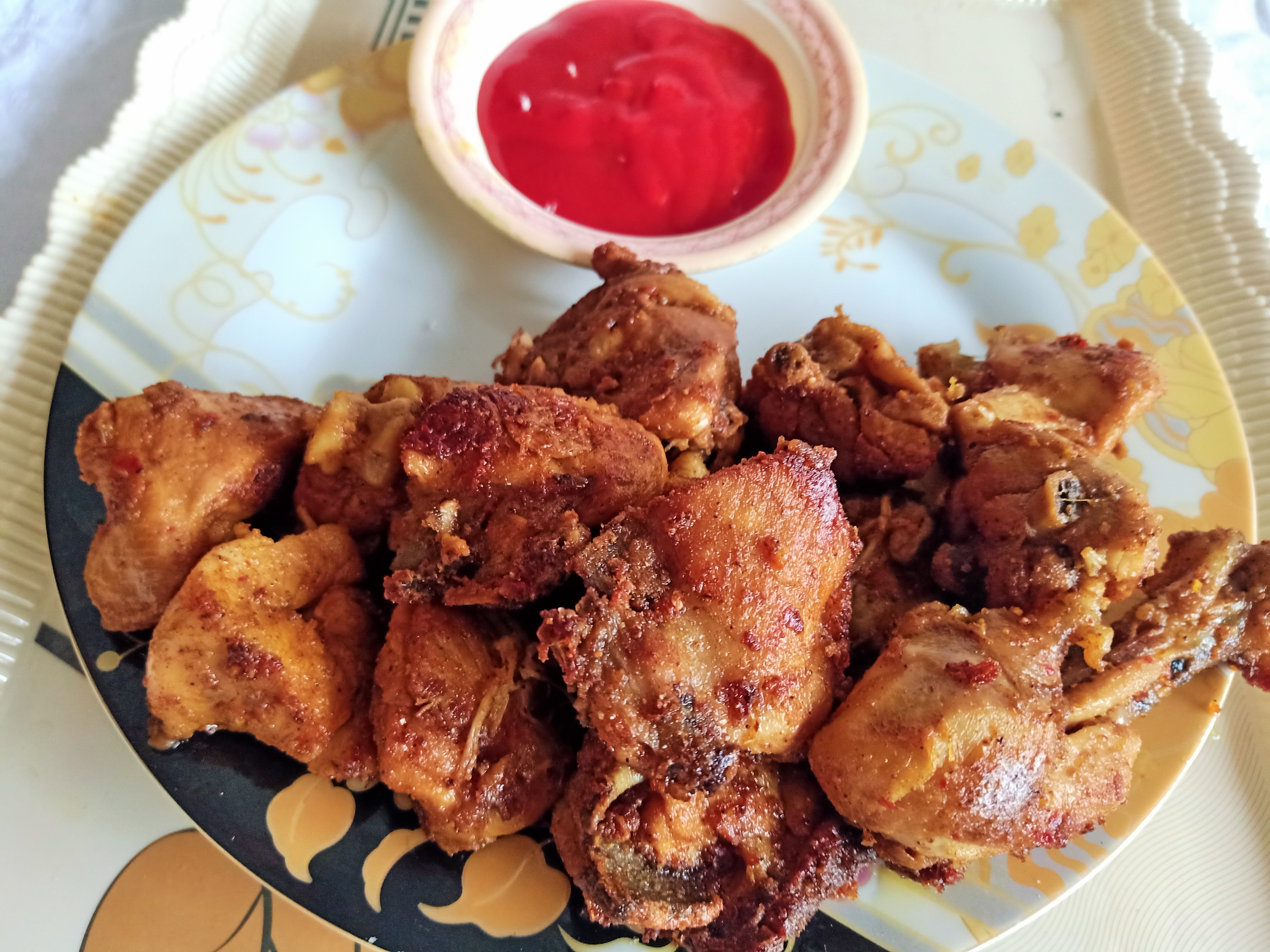 Chicken Fried recipe is pretty common everywhere and everyone has their own way of making it, when I cook this recipe i boiled chicken for 7 to 10 mins before frying it because of boiling i don't have to deep fry the chicken and cook really well from inside. You can eat this recipe with french fries or bread.