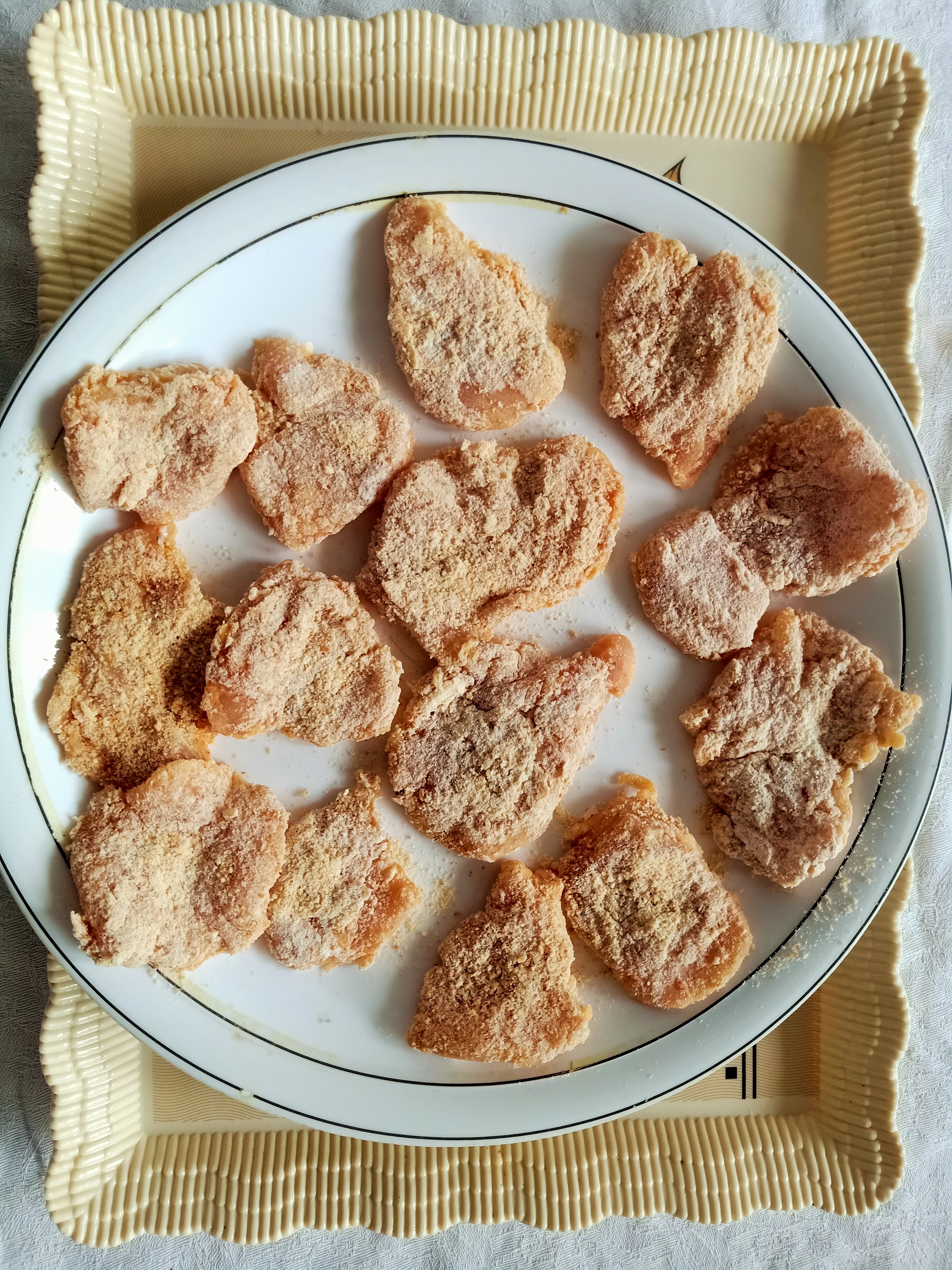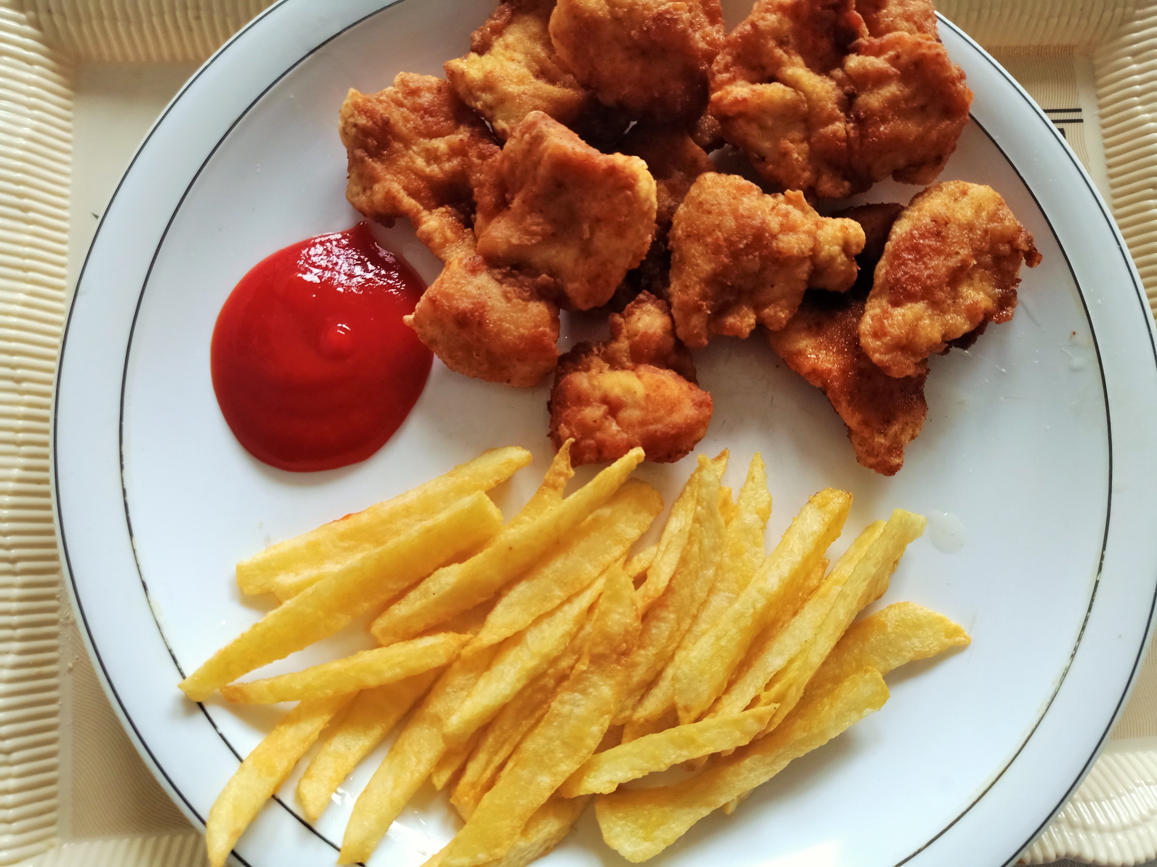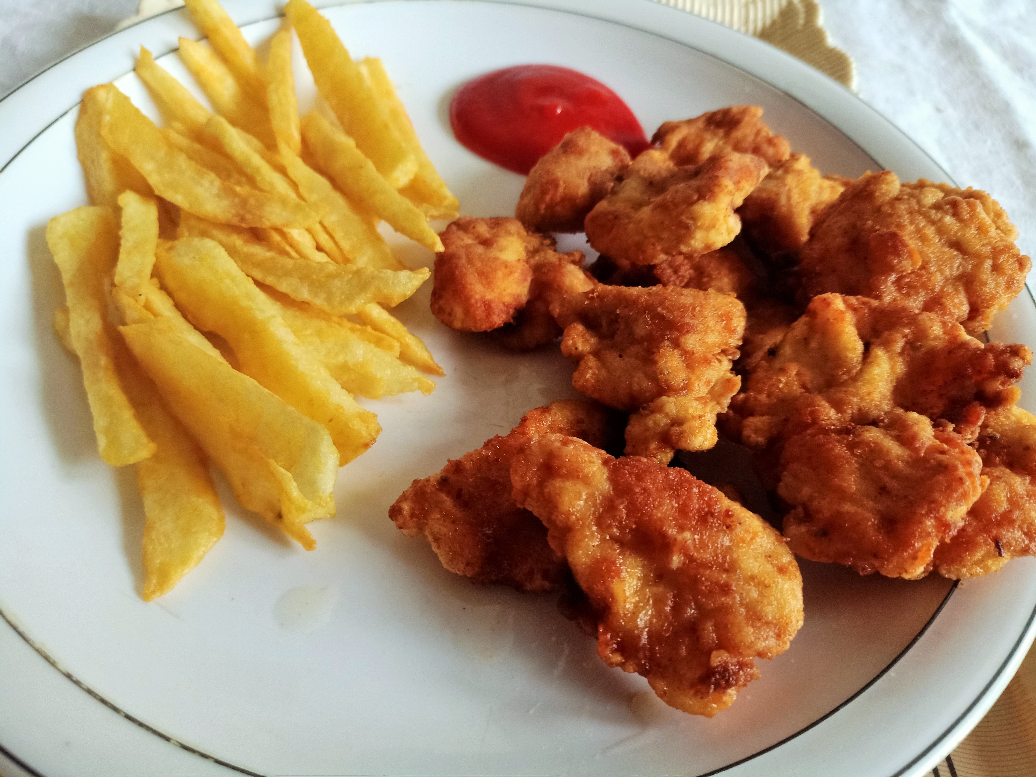 Chicken nuggets is very simple and delicious recipe, fast food lovers are very fond of it. It is deep fried in oil for cooking so we should be careful with it, Consuming too much is not good. It takes no time to cook because it is fried in oil but for good taste we should let it marinate 3 to 4 hours. Main ingredients in this is Chicken, flour and baking powder. I fried some french fries too to enjoy it with nuggets.