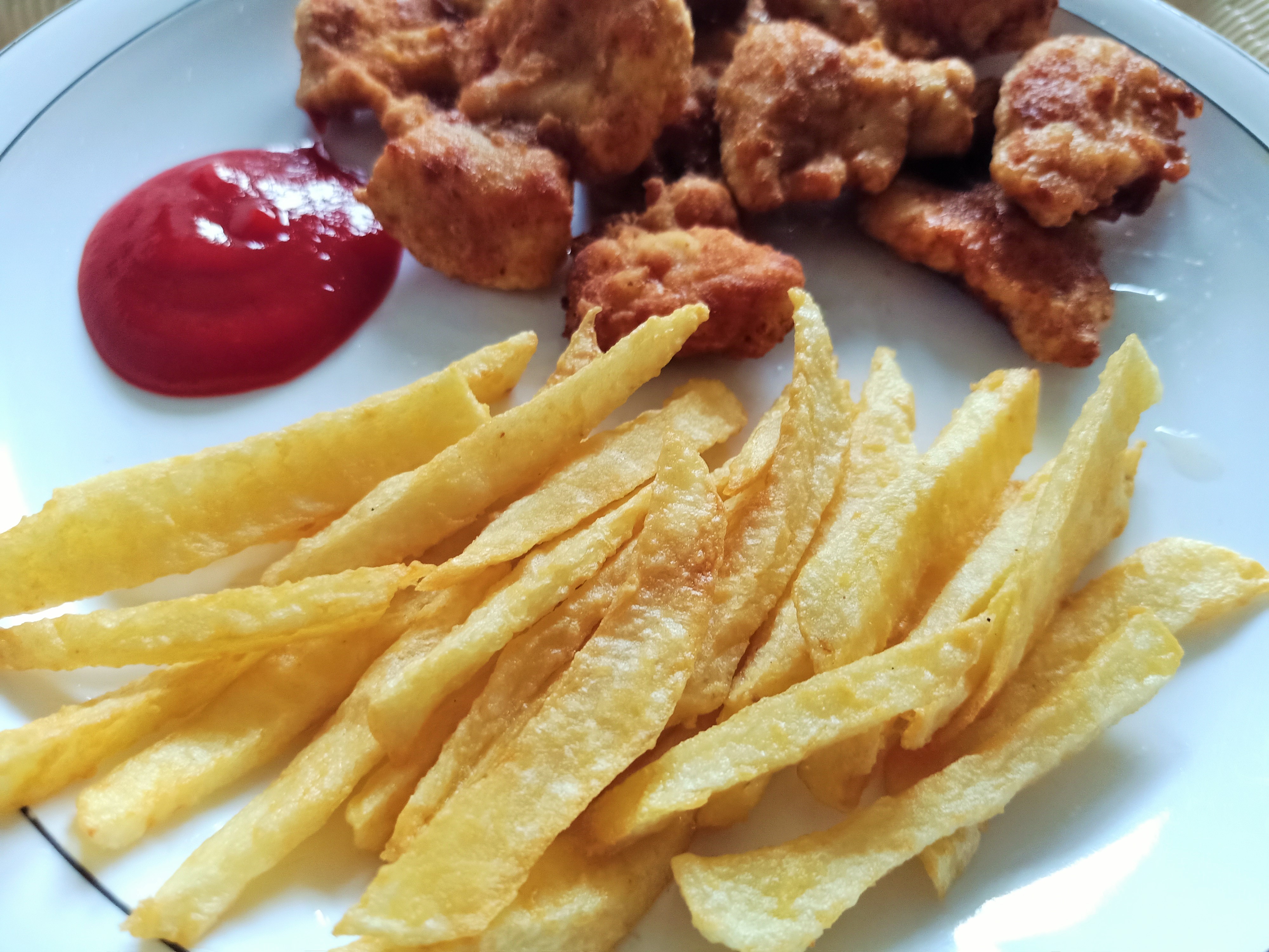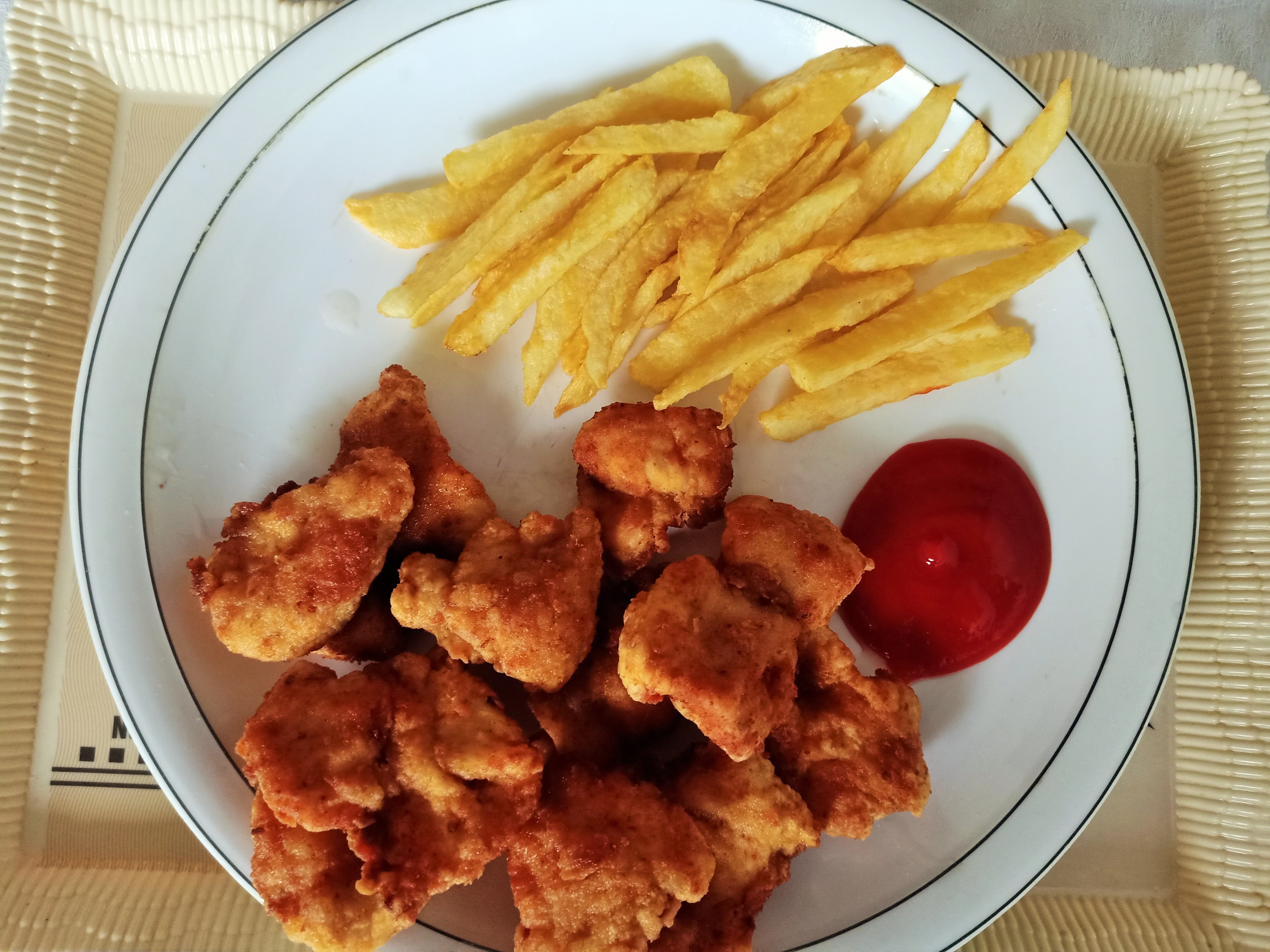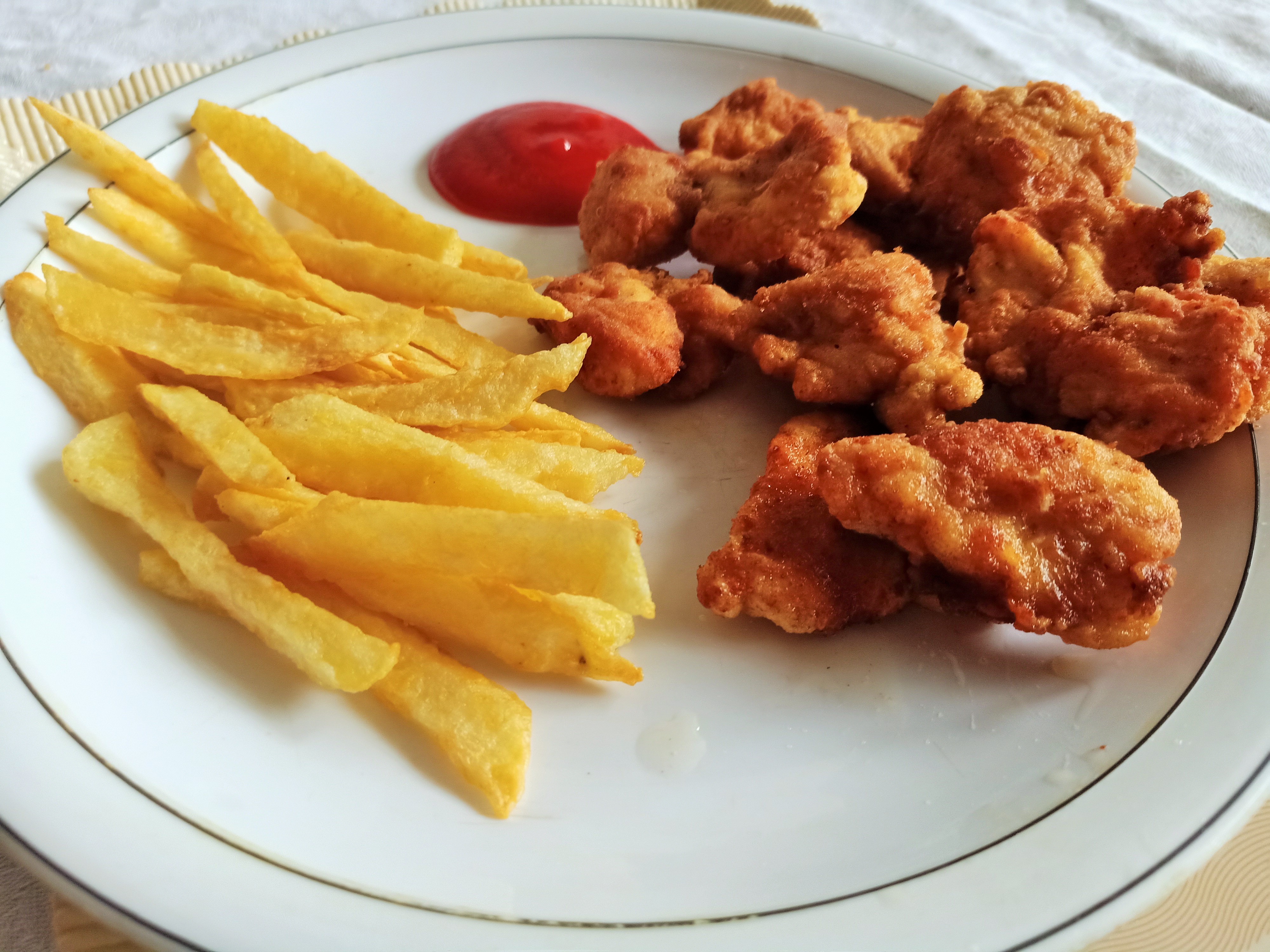 Chicken nuggets is very simple and delicious recipe, fast food lovers are very fond of it. It is deep fried in oil for cooking so we should be careful with it, Consuming too much is not good. It takes no time to cook because it is fried in oil but for good taste we should let it marinate 3 to 4 hours. Main ingredients in this is Chicken, flour and baking powder. I fried some french fries too to enjoy it with nuggets.