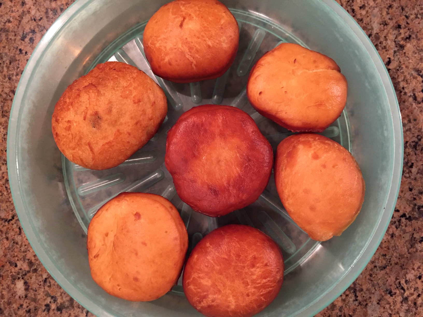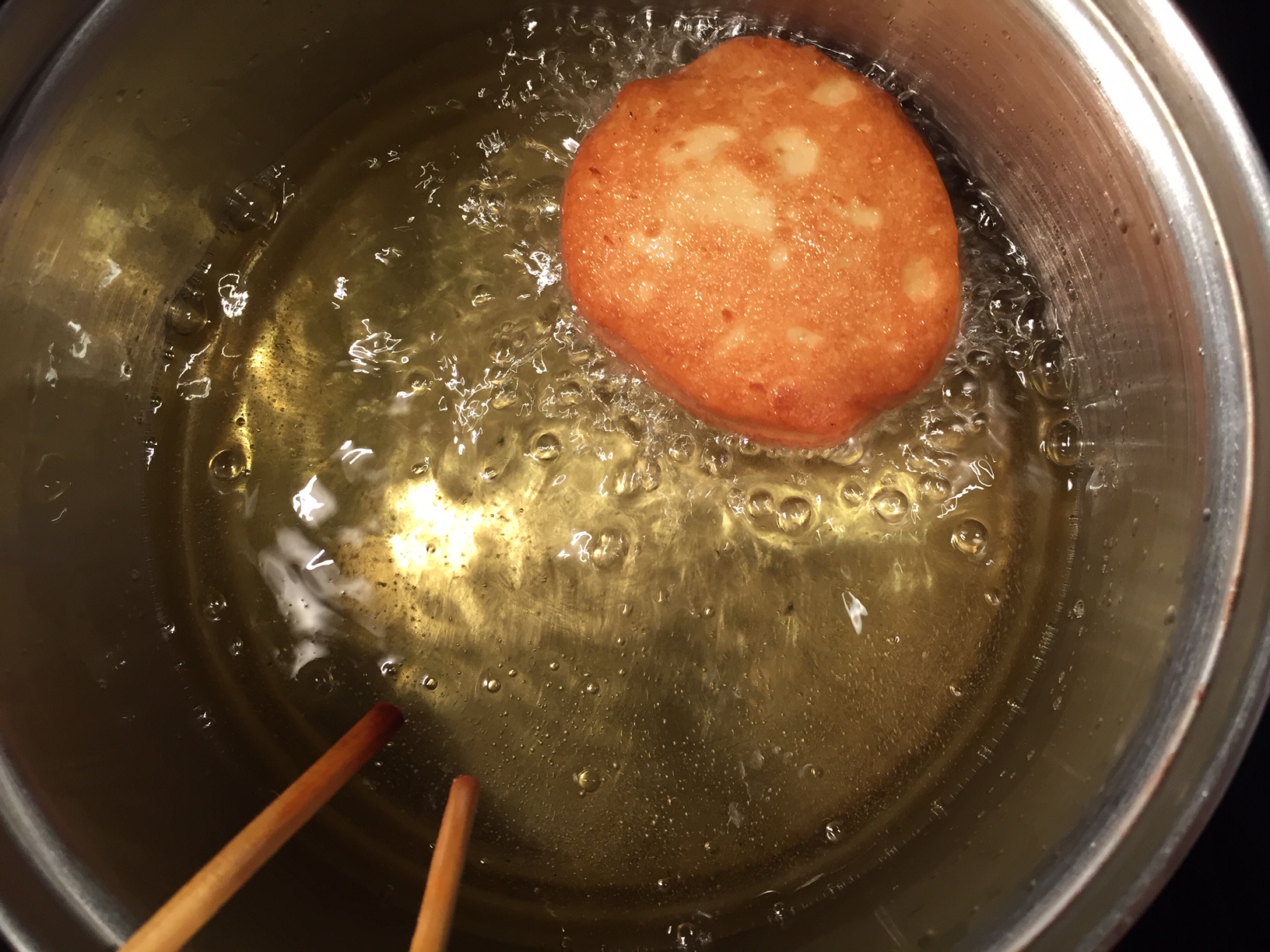 - Once time has passed, we fry the pumps in a small cauldron one by one.