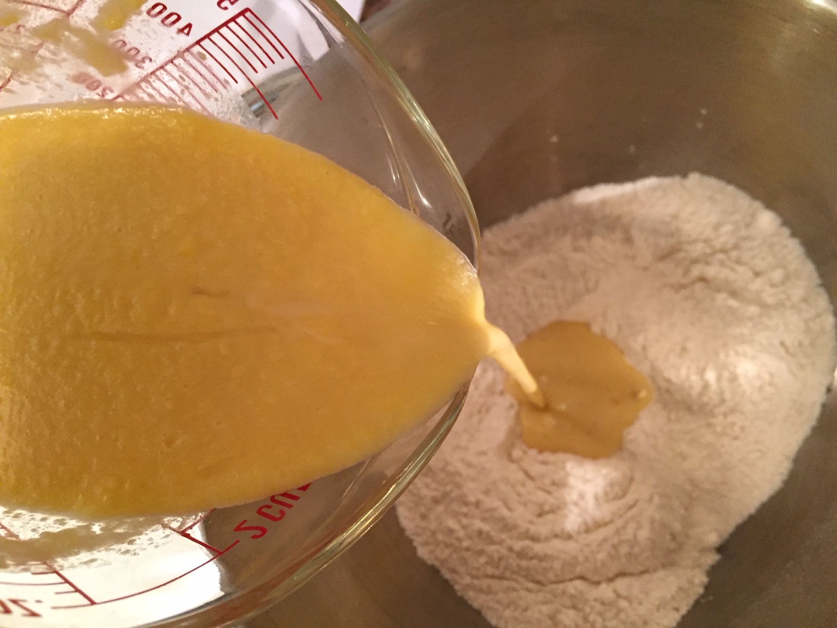 - We make a hole in the center and place the liquid ingredients.
