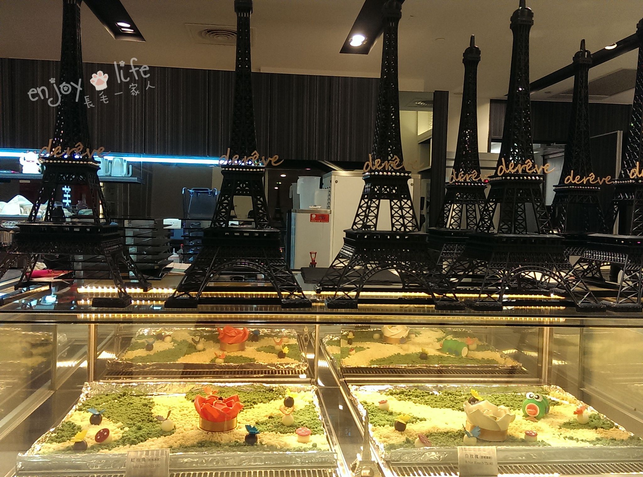 門口的甜點櫃和併排擺放的美麗鐵塔相當吸睛,這些精緻的甜點們會隨著鐵塔一起呈上,好夢幻啊~