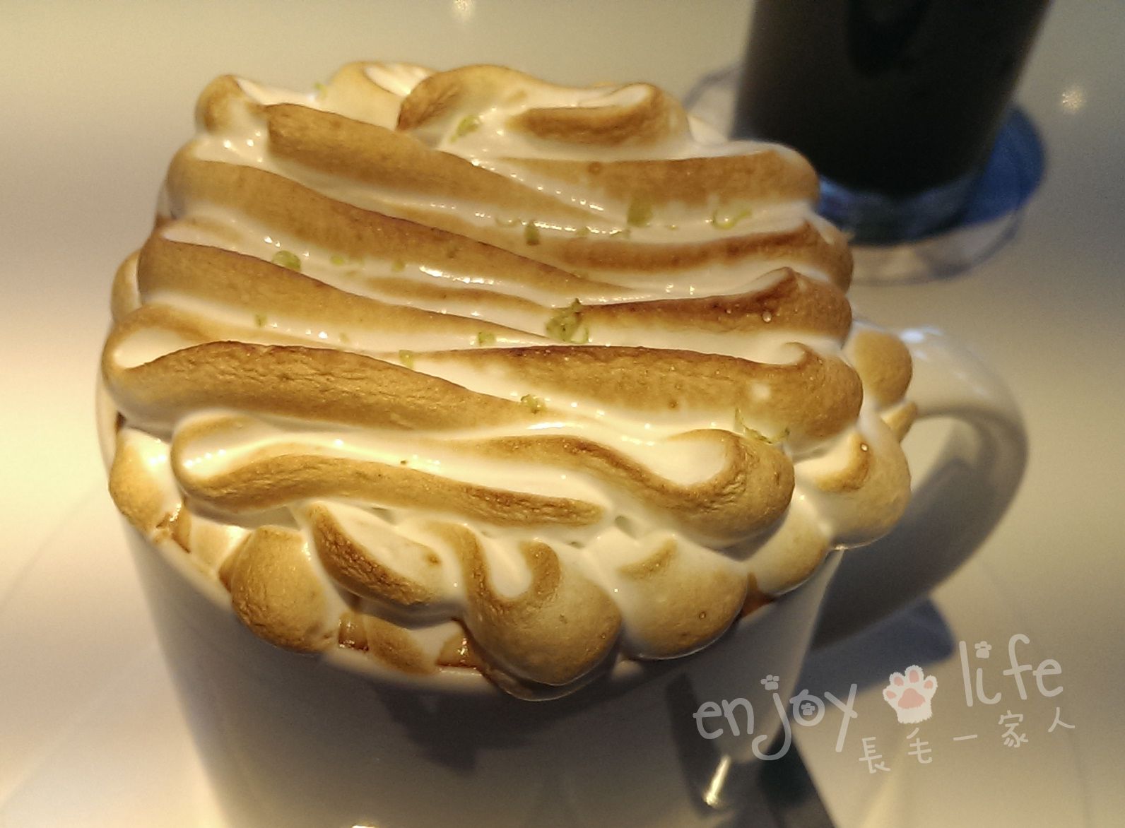 上層的雲朵是用義式蛋白糖霜加上檸檬汁打至發泡,再略烤上色,就成了表面略微酥脆的糖霜雲朵,卻又像棉花糖一般入口即化,口感很特別。