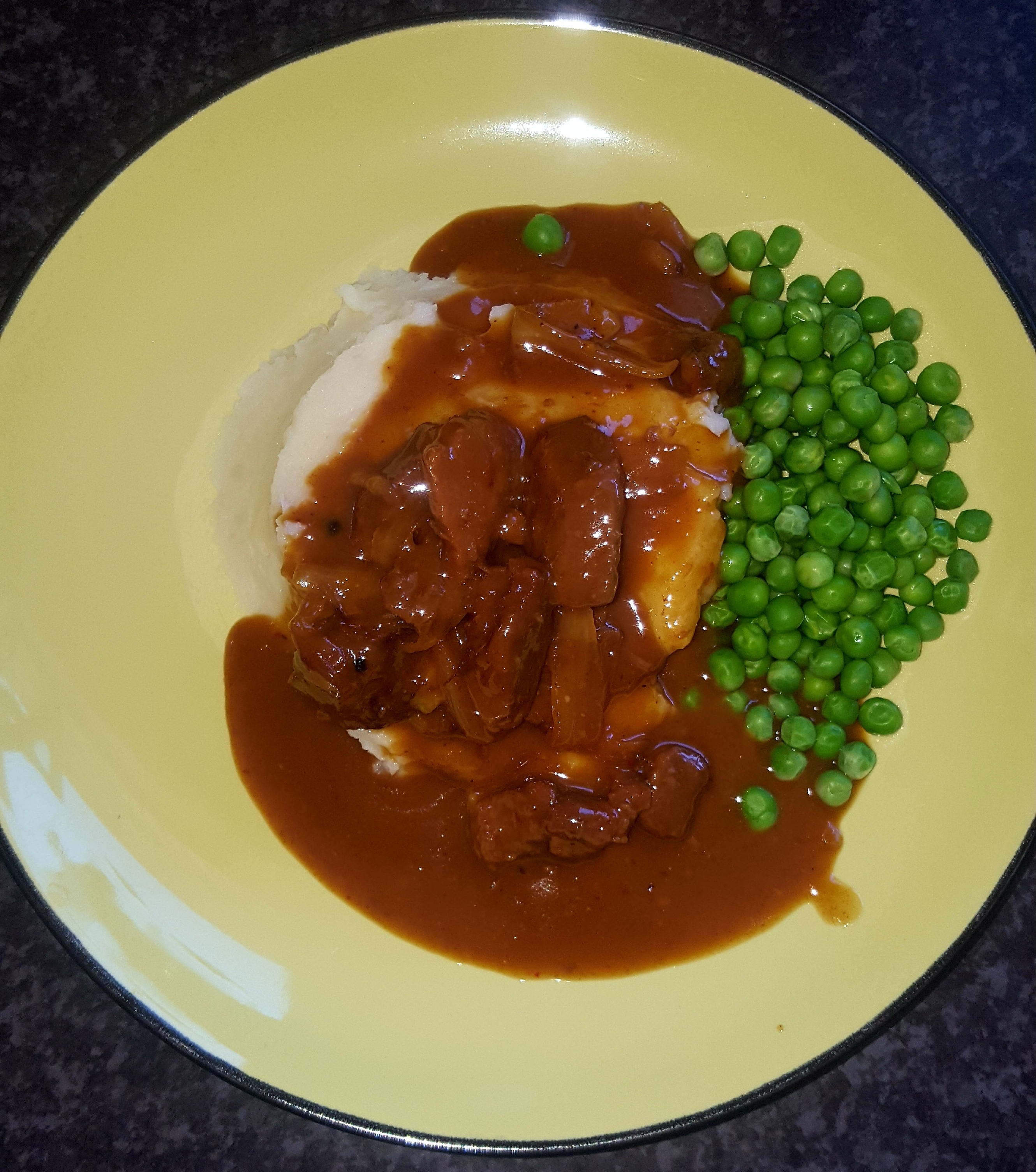 I served the dish with mashed potatoes made with a hint of fresh cream and peas.