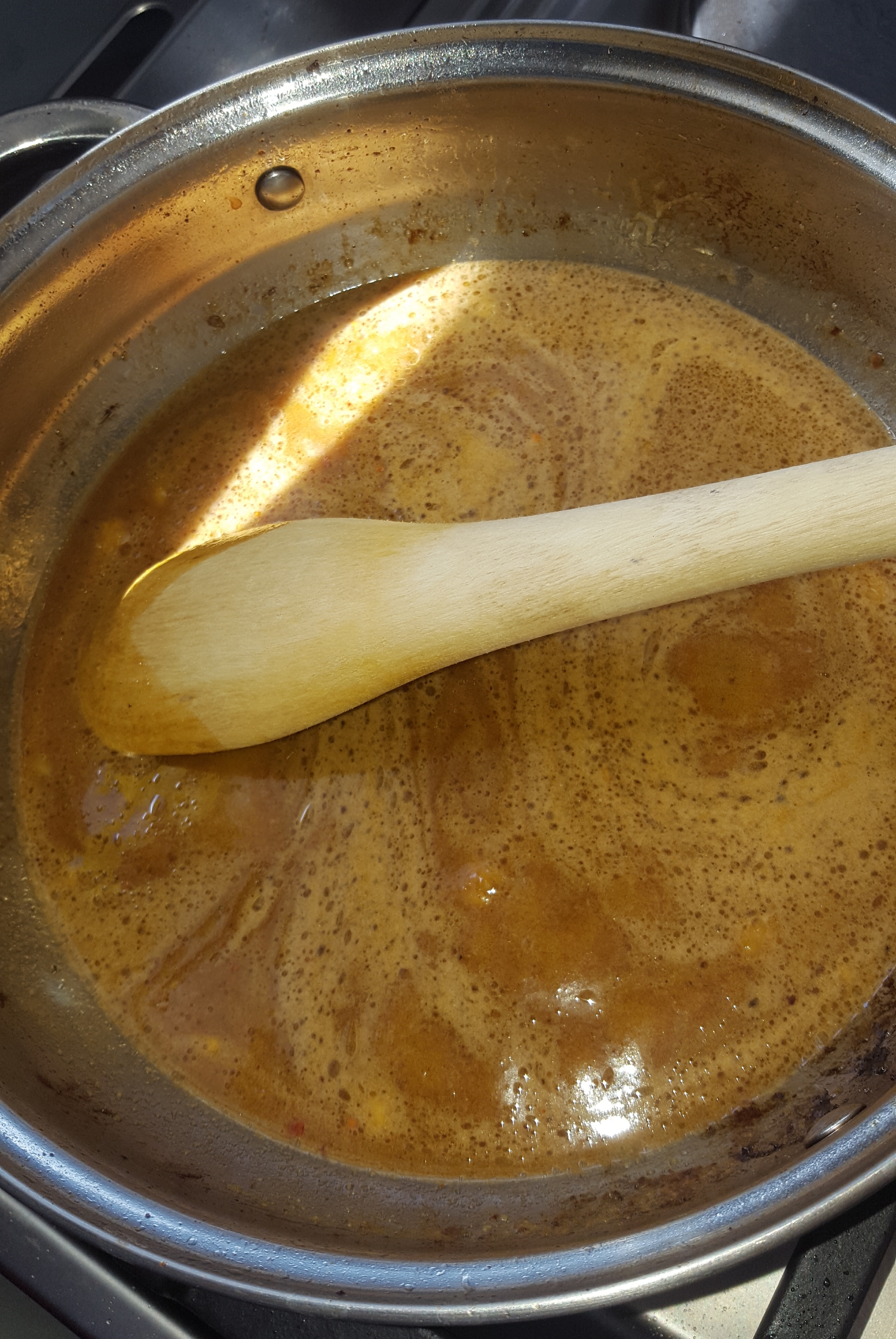 Add all ingredients to that you had in the blender to the juices in sauce pan. Bring to the boil and simmer for about 4-5 minutes.