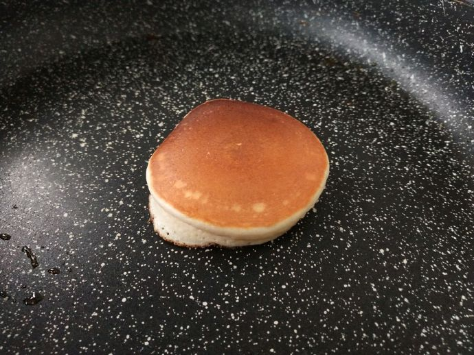 4、将混合物从裱花袋中基挤出,掌心大小即可,2分钟后即可翻面,两面变得金黄后即可。