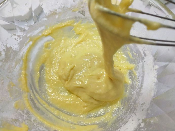 - Separate the egg yolk egg white, add corn oil and milk to the egg yolk, and then sieve into the low powder and baking powder, and stir evenly until no granules.
