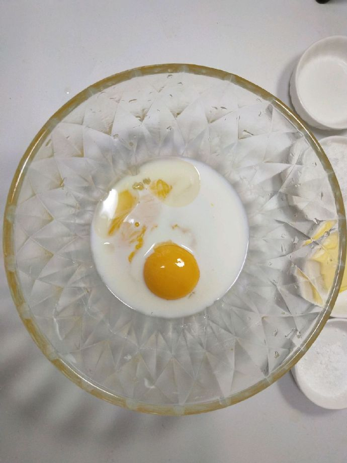 低筋面粉 45g 泡打粉 3g 牛奶 20ml 鸡蛋 2个