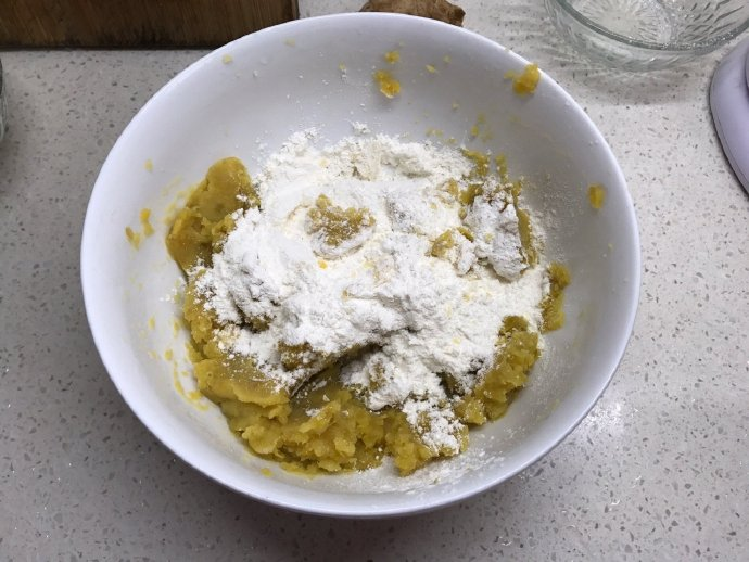 - Add flour to the sweet potato puree, knead well, and the kneaded dough is soft and not sticky.