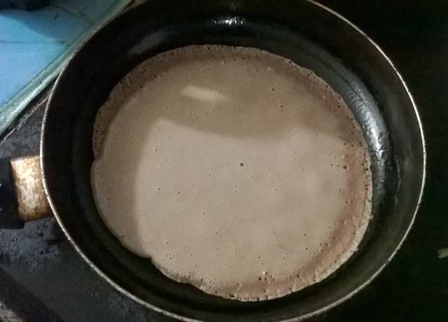 Para seguir con el procedimiento debemos colocar todos los ingredientes en la licuadora y batir hasta que se hayan mezclado uniformemente. Luego calentar una sartén de teflón engrasada a fuego medio alto, verter una porción de la mezcla y girar suavemente para esparcir la mezcla en el fondo de la misma para que quede delgada.