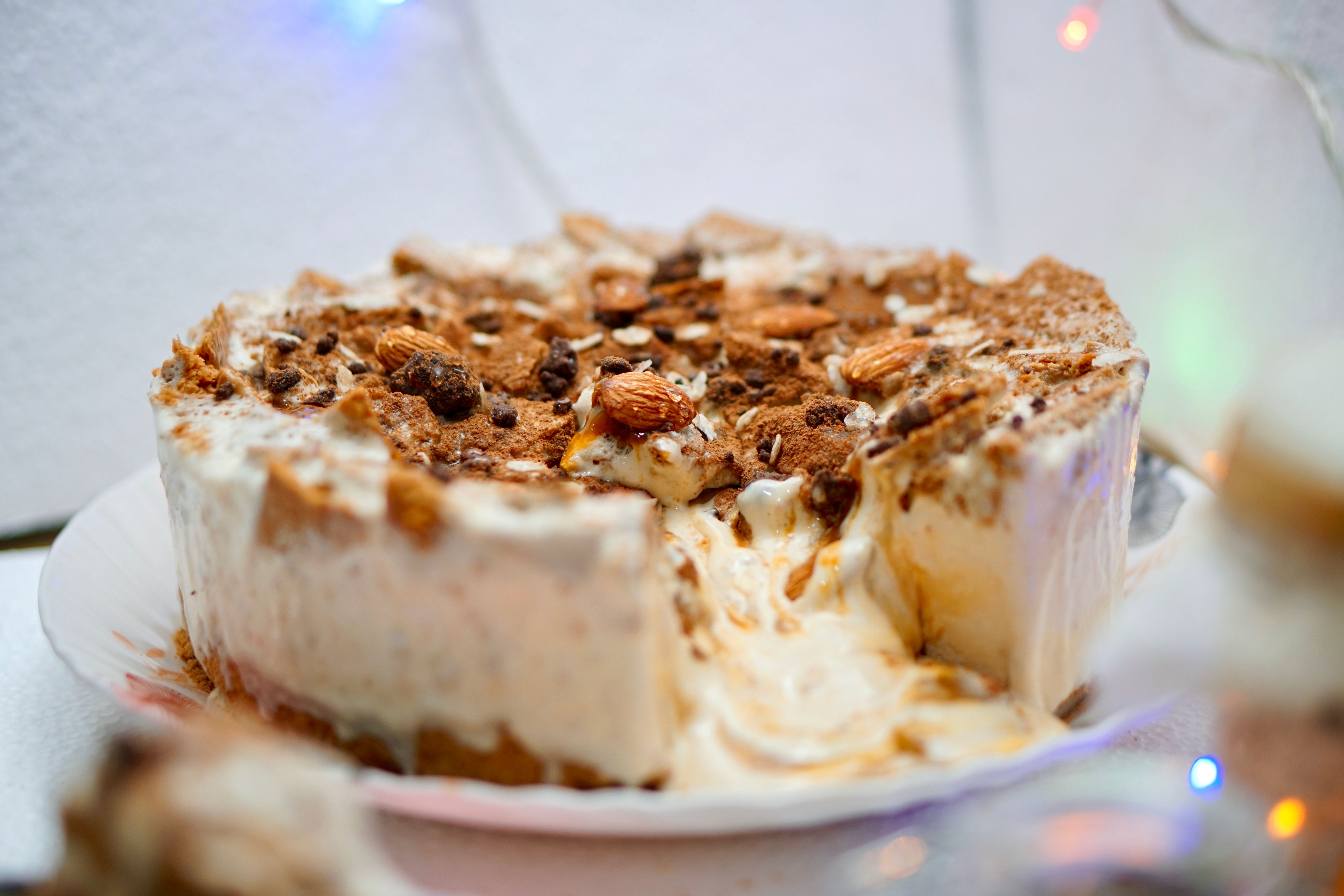 - Sprinkle generous amount of crushed grahams on top and pour remaining cream.