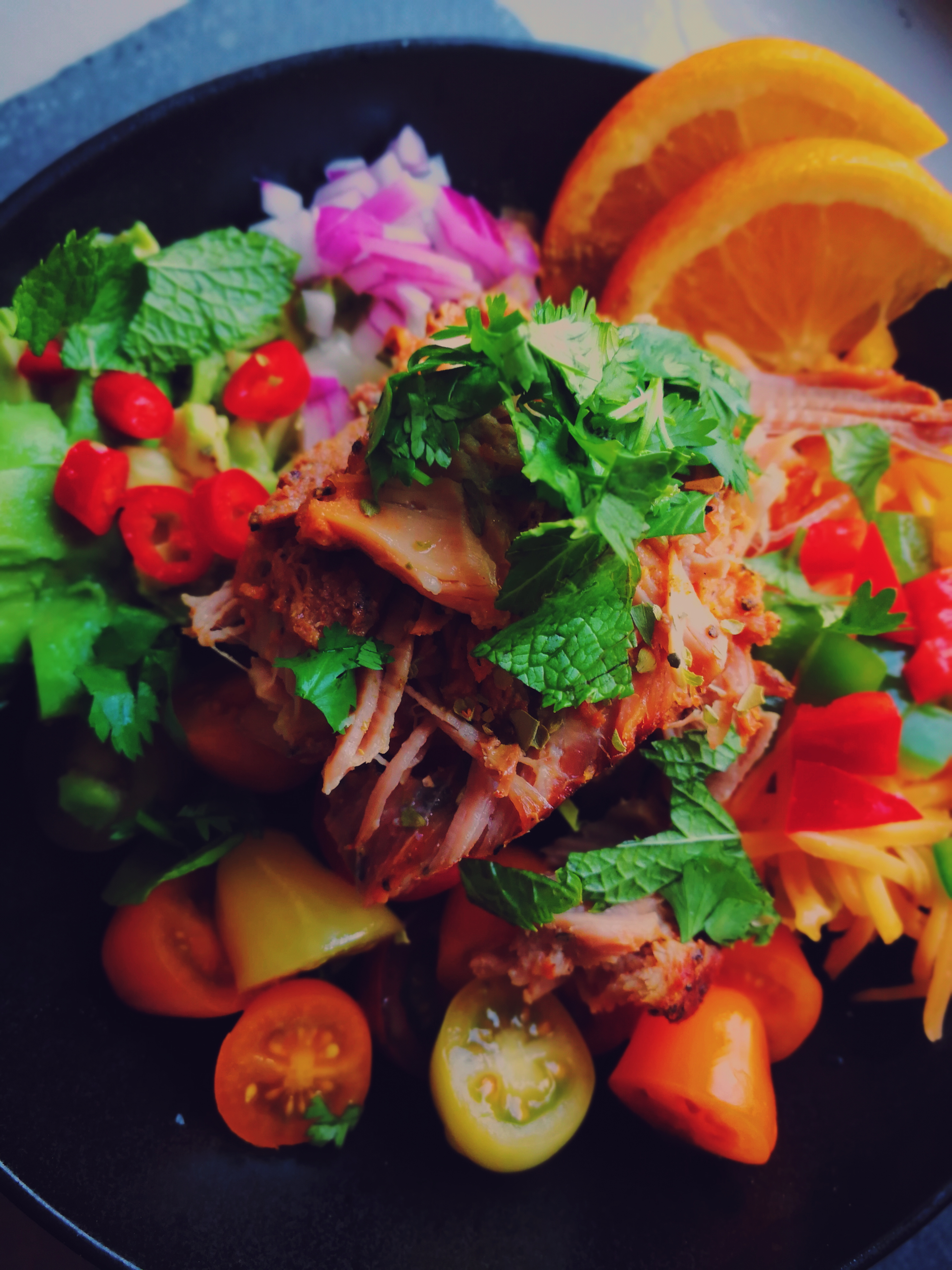 - Marinated pulled pork cooked in oven (25 min approx.)