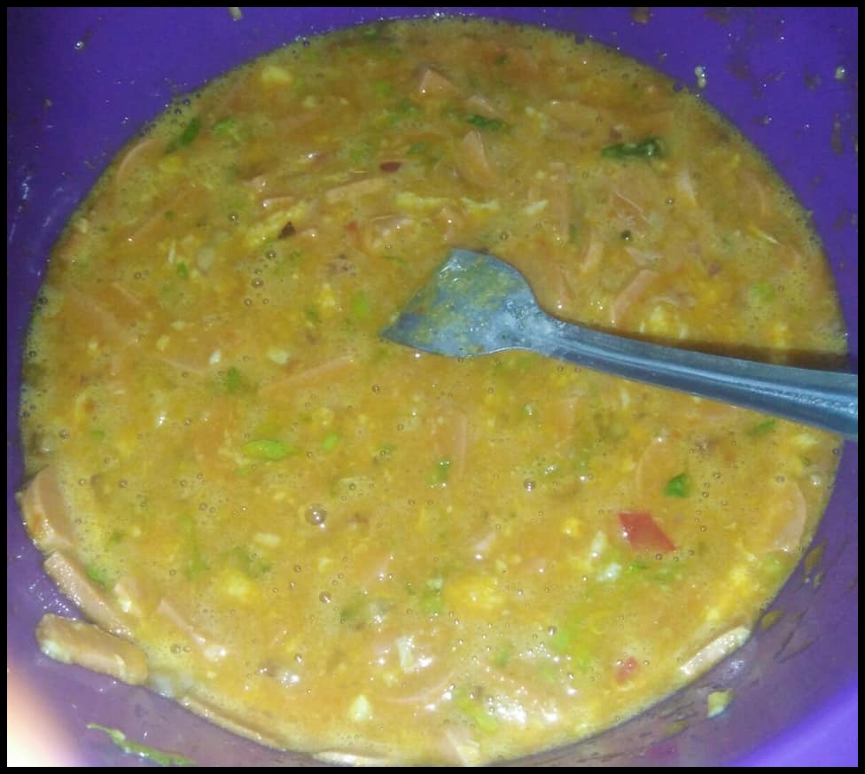 - Mix all ingredients into the eggs we have shaken, like making omelettes.
