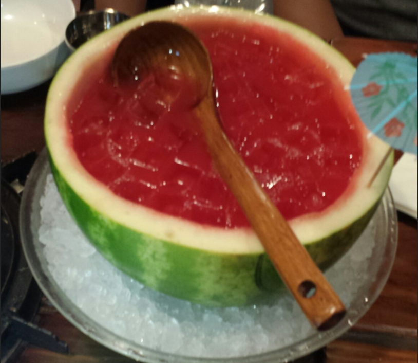 Lastly, one of the MUST have's! The Soju Watermelon Bowl. I loved this so much I duplicated it many times at home parties and BBQ's. Be careful though, this clear liquor has almost NO taste or smell whatsoever and does a good job of just blending in with whatever you mix it with. So, will give you the impression you're not drinking at all. And, that can have drastic effects once it sneaks up on you.