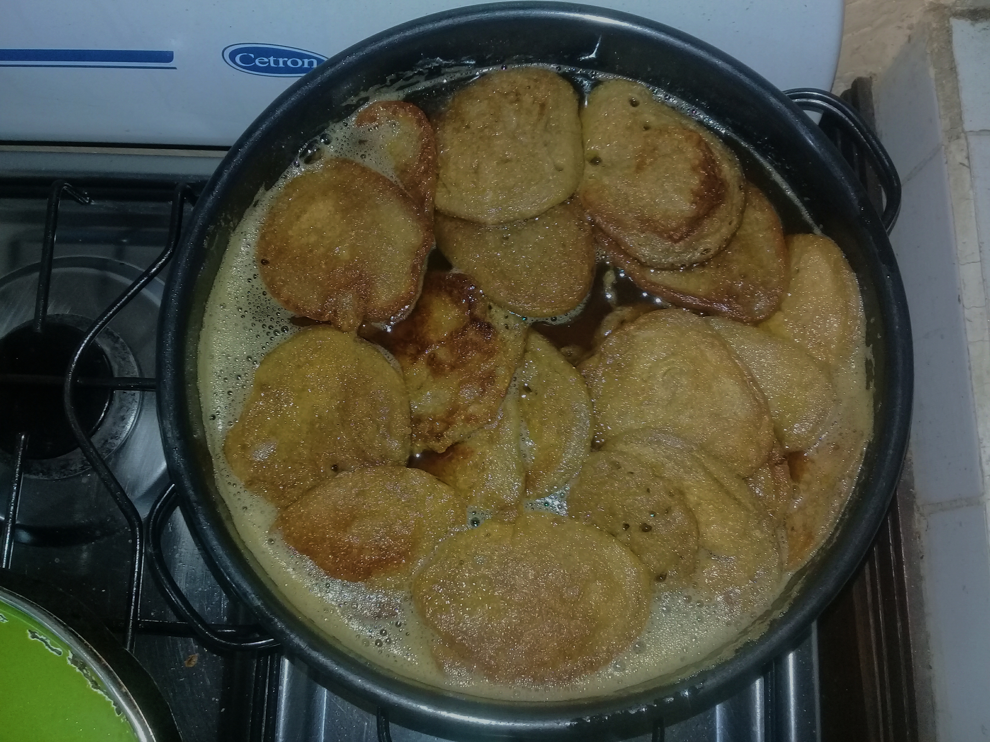 Luego en una sartén con aceite precalentado, agregamos las cucharadas de la mezcla preparada, colocandolas separadas una de la otra, cuando esten medio doraditas se les da vuelta. Al sacarlas deben ponerse a escurrir y en una servilleta para absorver el aceite.