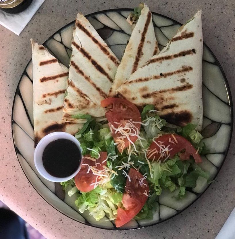 I ordered a smoothie, empanada, burger, and quesadilla.