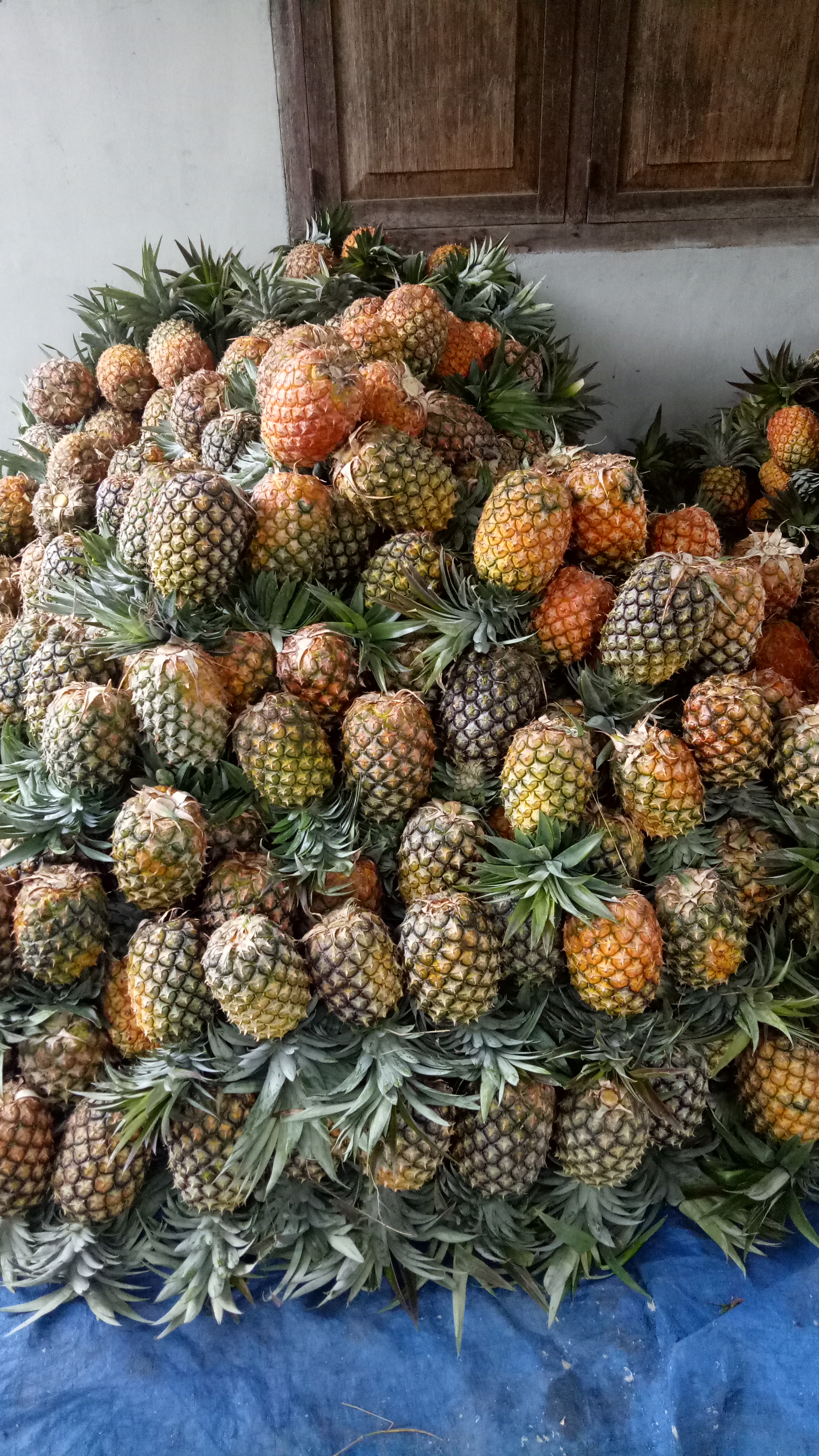 I take a pict this Pineapple in front of the house, there are 1000 pineapple taken from Tapanuli, North Sumatra. The price of one pineapple price about 6-8 thousand rupiah.