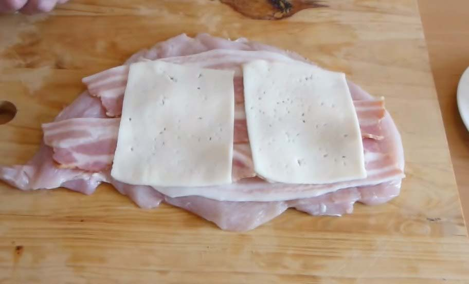 A continuación, poner el bacon/tocino de manera uniforme sobre el pollo.