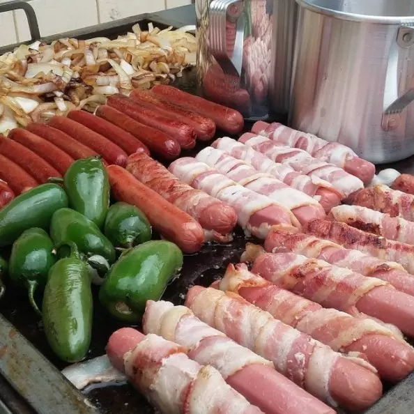 También son muy populares los del Estilo Sonora, estos traen tocino envuelto en la salchicha y son cocinados al grill, acompañados de cebollas, tomates, chiles y hasta frijoles.