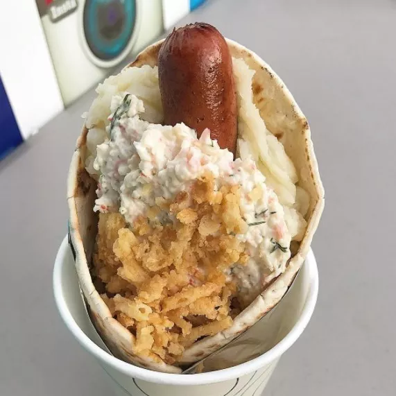 ¿Qué los hace únicos?: Son rollitos de pan plano con salchicha, cebollas tostadas, puré, lechugas, ensalada de camarones y más variedades de deliciosos rellenos.