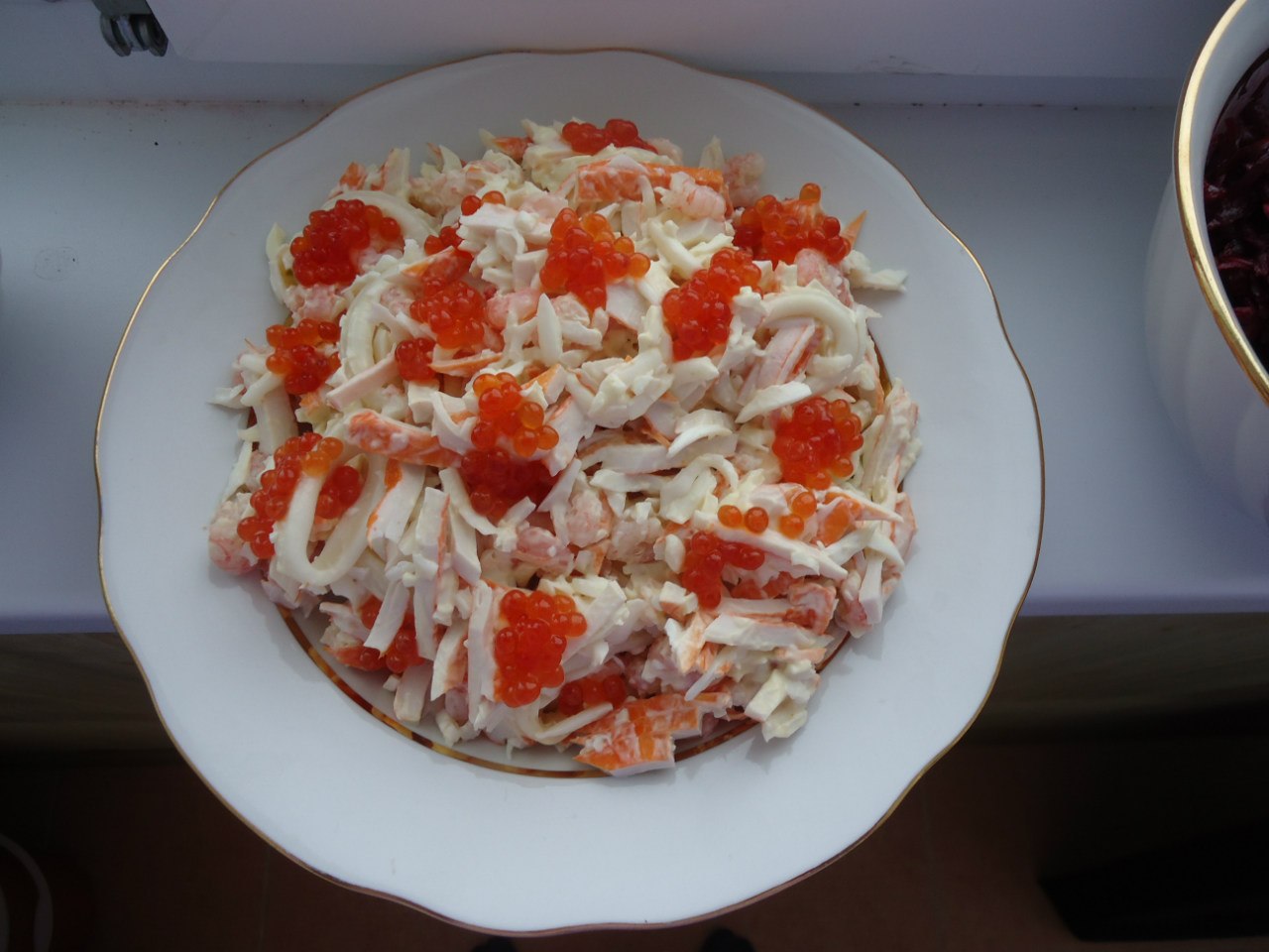Colorchallenge orange tuesdaydarul77 (60)in #food • 7 years ago Salad with caviar and other seafood things like crabs sticks and some rings, its not healthy because of mayonnaise but its very delicios! #colorchallenge #photography